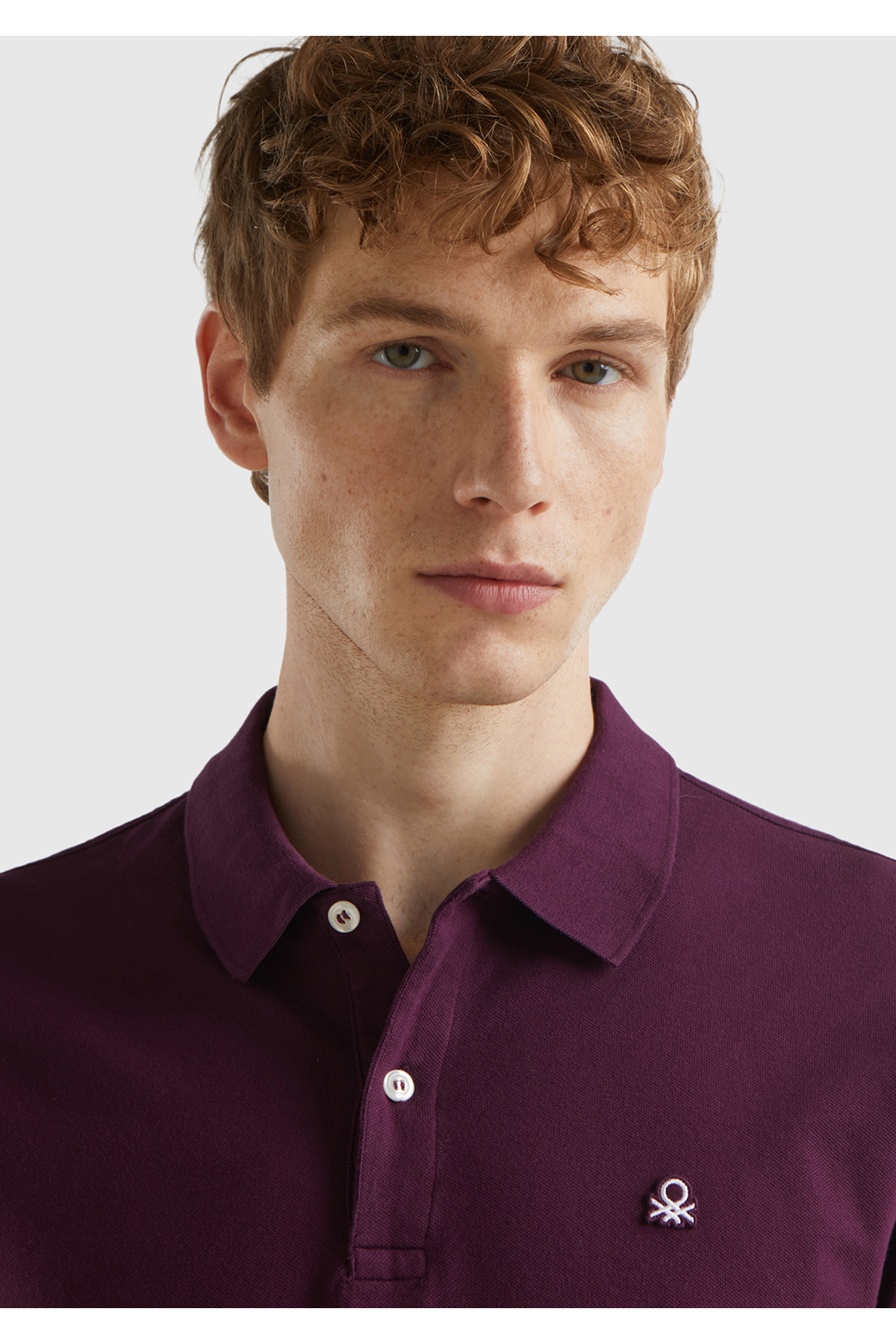 خرید اینترنتی تی‌شرت یقه پولو مردانه طرح ترکیبی پنبه‌ای بنفش با جزئیات لوگو روی سینه برند یونایتد کالرز آو بنتون United Colors of Benetton اورجینال از United Colors of Benetton نمایندگی ترکیه