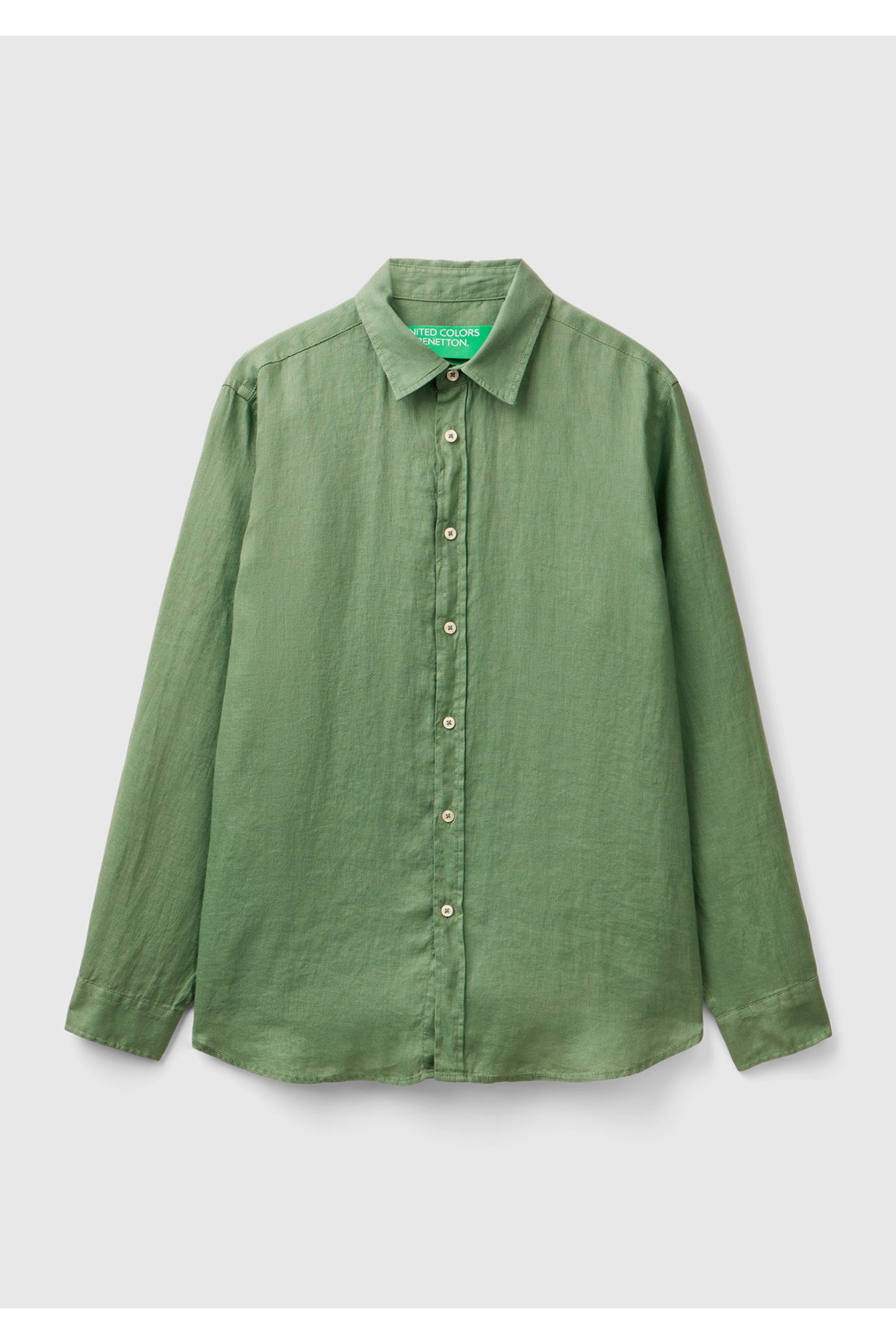 خرید اینترنتی پیراهن مردانه سبز نعنایی ۱۰۰٪ کتان برند یونایتد کالرز آو بنتون United Colors of Benetton اورجینال از United Colors of Benetton نمایندگی ترکیه