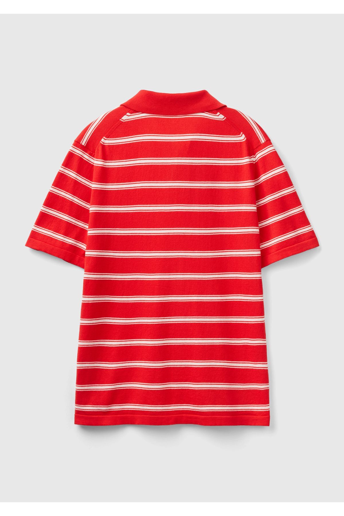 خرید اینترنتی تی‌شرت بافتنی یقه پولو سه دکمه راه راه ۱۰۰٪ پنبه‌ای مردانه قرمز برند یونایتد کالرز آو بنتون United Colors of Benetton اورجینال از United Colors of Benetton نمایندگی ترکیه