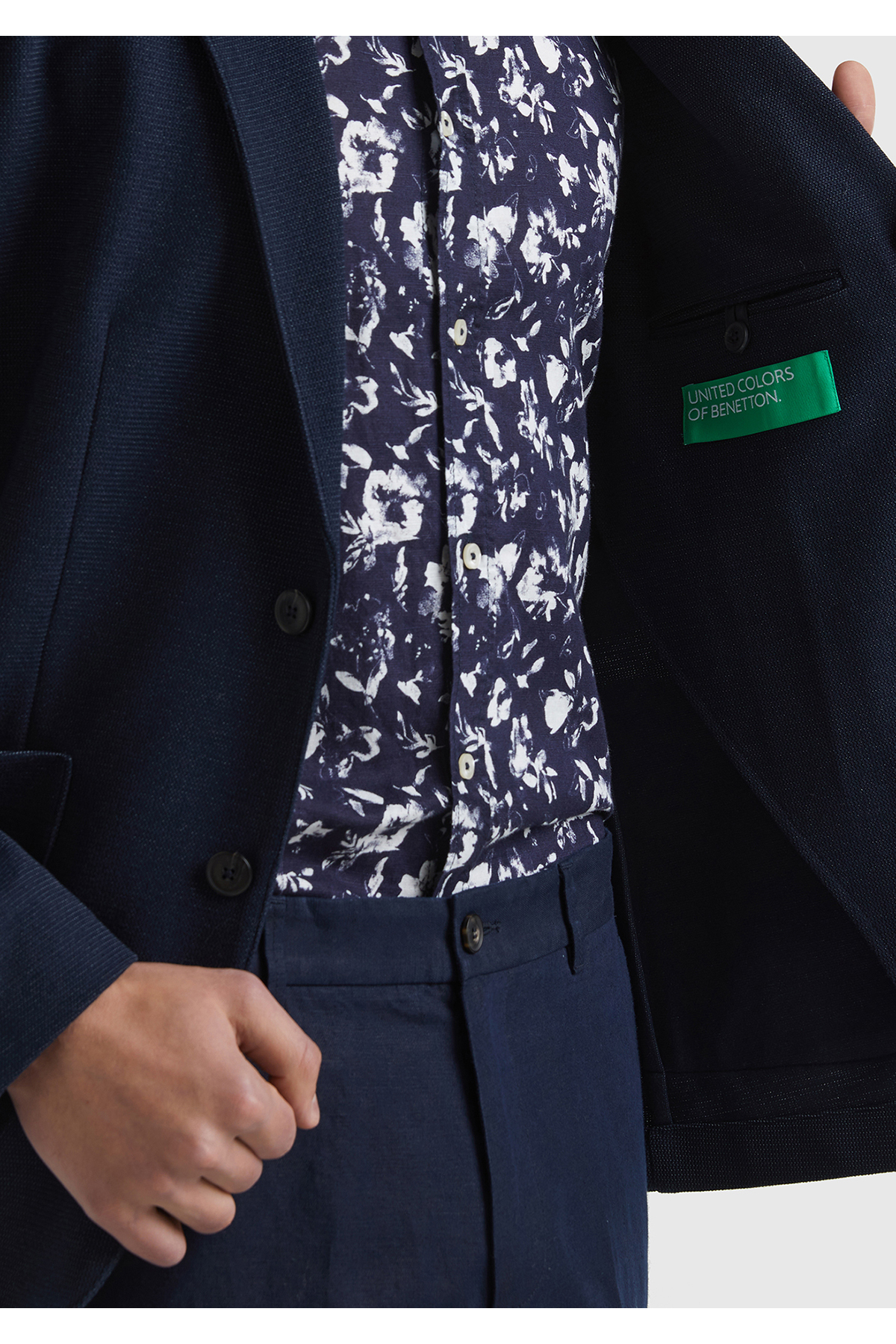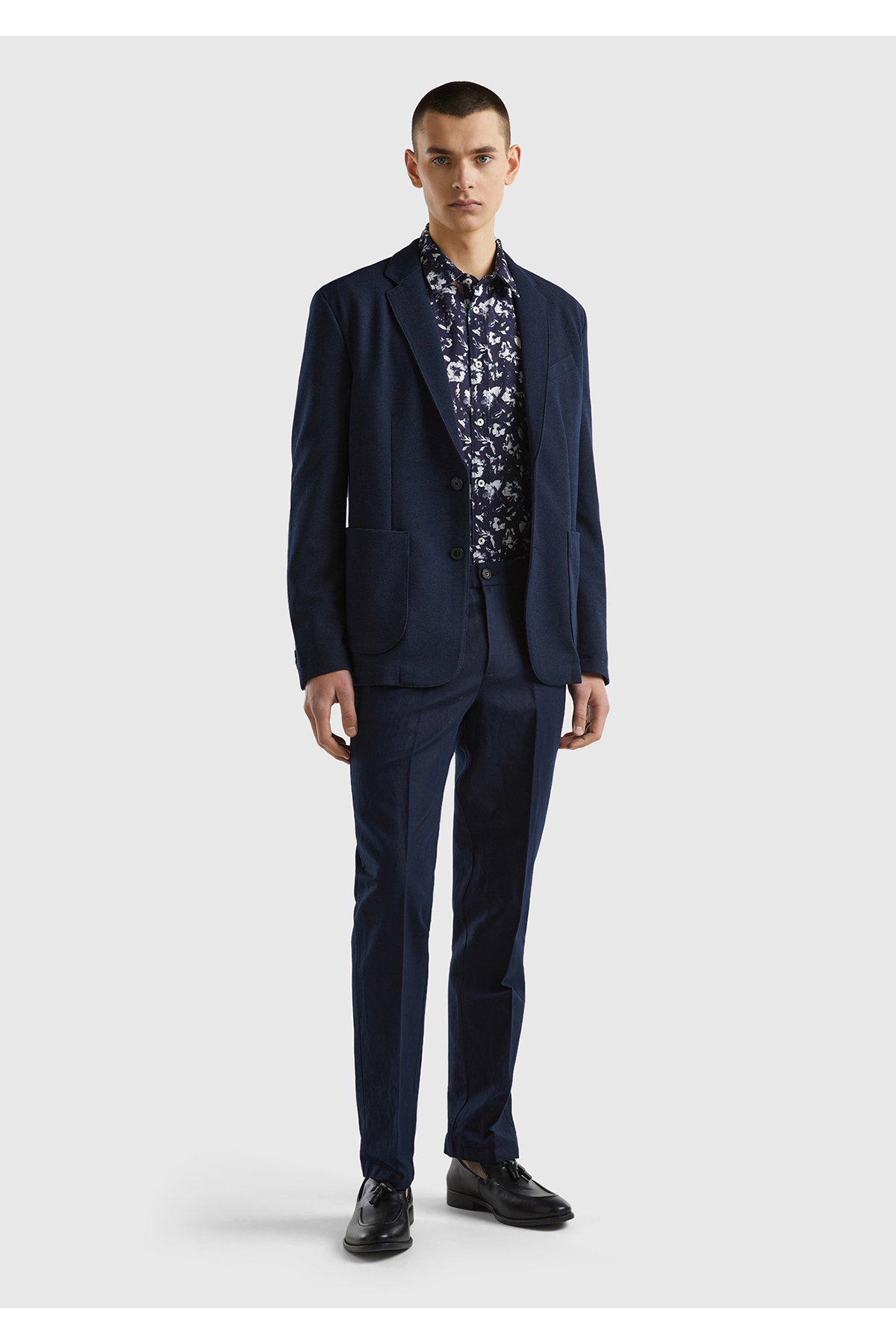 خرید اینترنتی ژاکت مردانه دو دکمهای طرح ویسکوز نیلی با جزئیات جیب لولهای برند یونایتد کالرز آو بنتون United Colors of Benetton اورجینال از United Colors of Benetton نمایندگی ترکیه