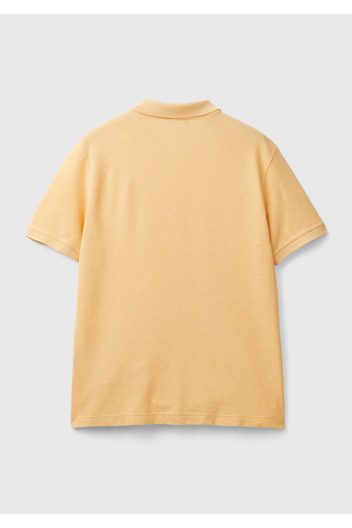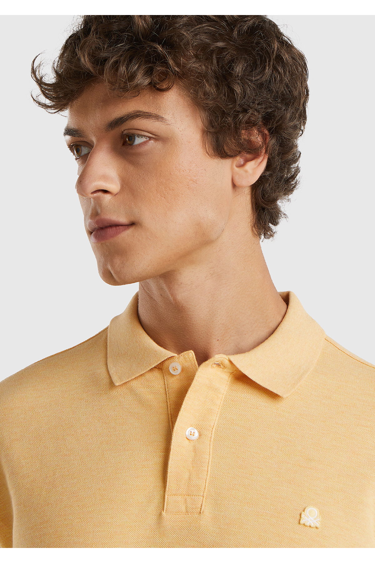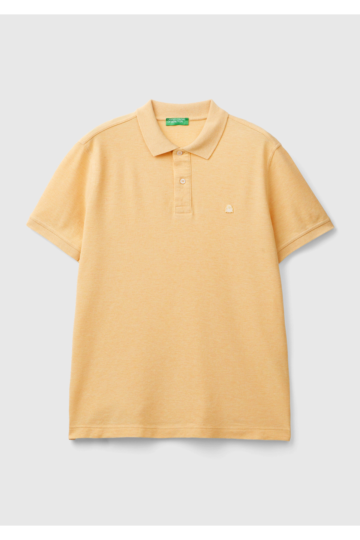 خرید اینترنتی تی‌شرت یقه‌دار مردانه خردلی ۱۰۰٪ پنبه‌ای دکمه‌دار با لوگوی گلدوزی شده روی سینه برند یونایتد کالرز آو بنتون United Colors of Benetton اورجینال از United Colors of Benetton نمایندگی ترکیه