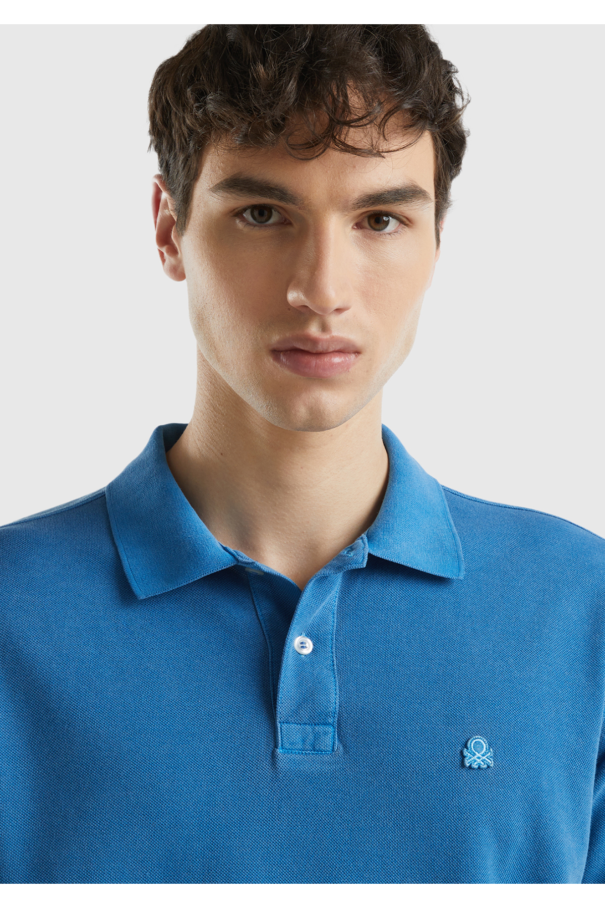 خرید اینترنتی پولو شرت مردانه ۱۰۰٪ پنبه‌ای سرمه‌ای با لوگوی گلدوزی شده روی سینه برند یونایتد کالرز آو بنتون United Colors of Benetton اورجینال از United Colors of Benetton نمایندگی ترکیه