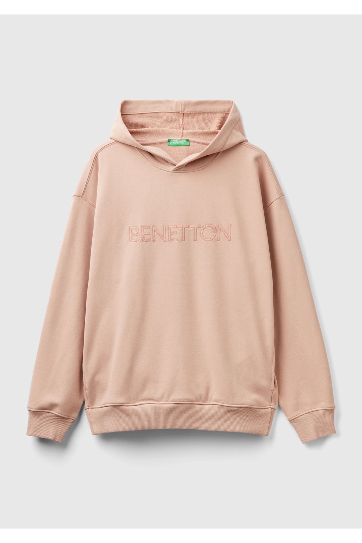 خرید اینترنتی سویشرت مردانه کلاهدار طرح صورتی پودری از جنس پنبه با چاپ لوگو در جلو برند یونایتد کالرز آو بنتون United Colors of Benetton اورجینال از United Colors of Benetton نمایندگی و فروشگاه معتبر ترکیه