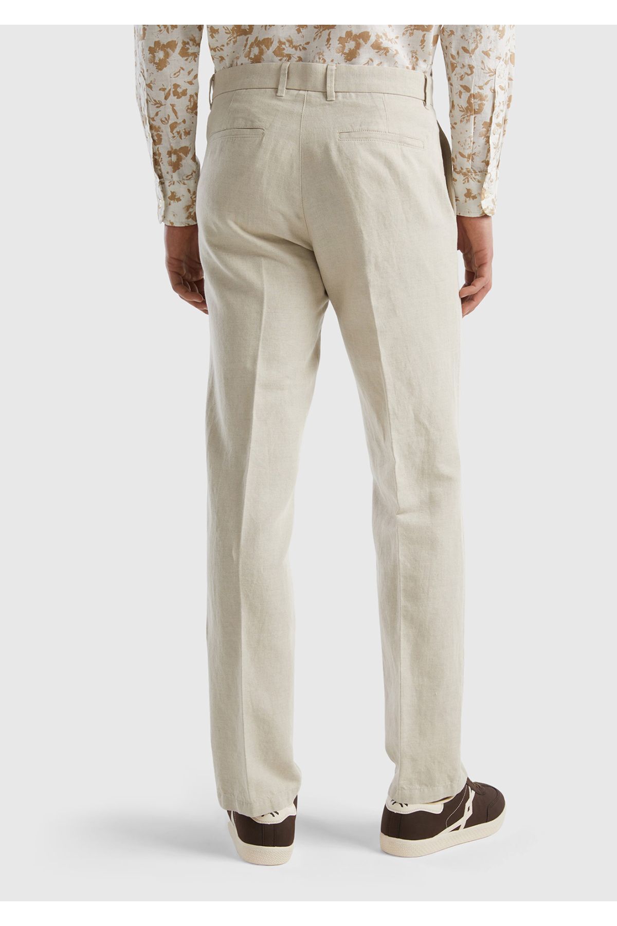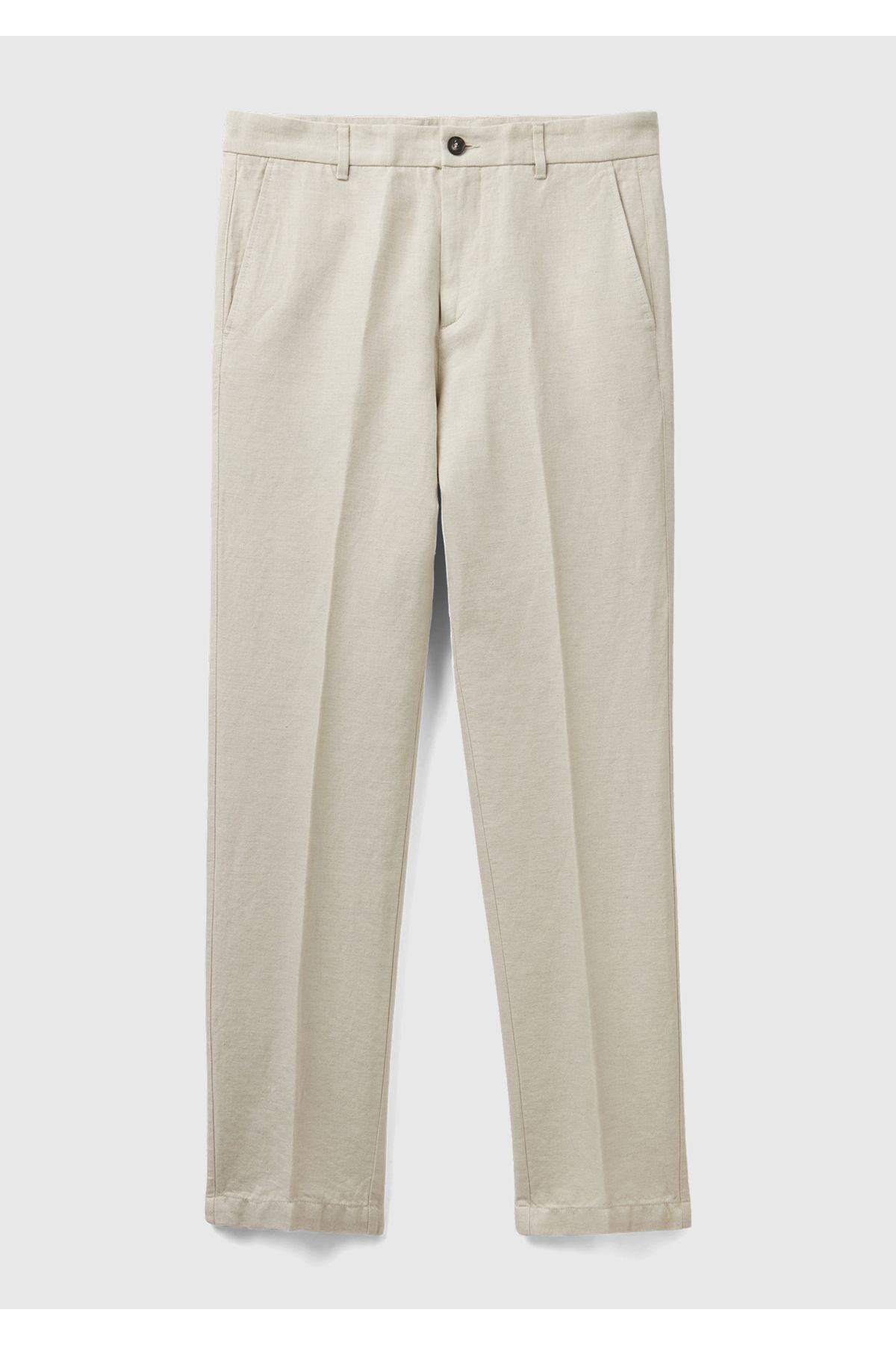 خرید اینترنتی شلوار مردانه راسته ترکیبی کتان بژ با جیبهای لولهای و سوراخهای کمربند برند یونایتد کالرز آو بنتون United Colors of Benetton اورجینال از United Colors of Benetton نمایندگی ترکیه