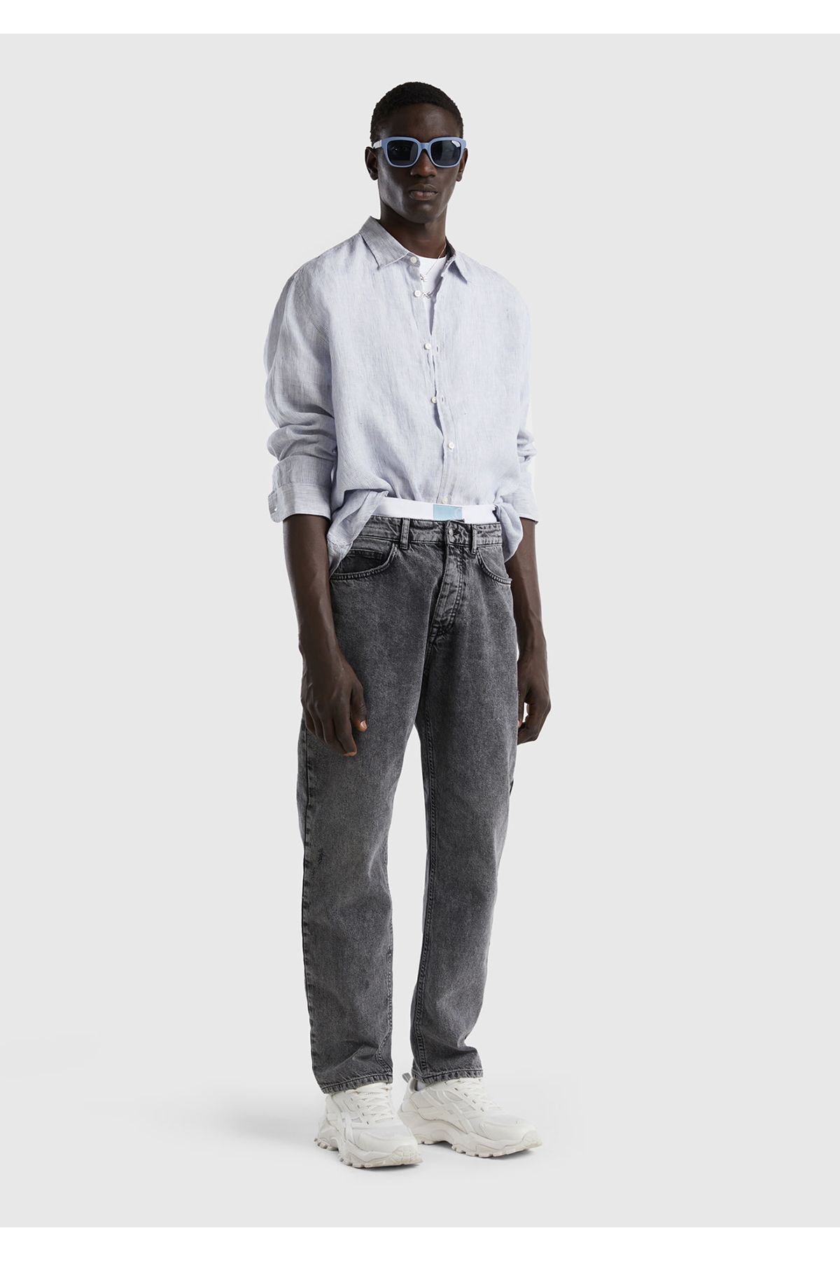 خرید اینترنتی پیراهن مردانه سفید میکس ۱۰۰٪ کتان برند یونایتد کالرز آو بنتون United Colors of Benetton اورجینال از United Colors of Benetton نمایندگی ترکیه