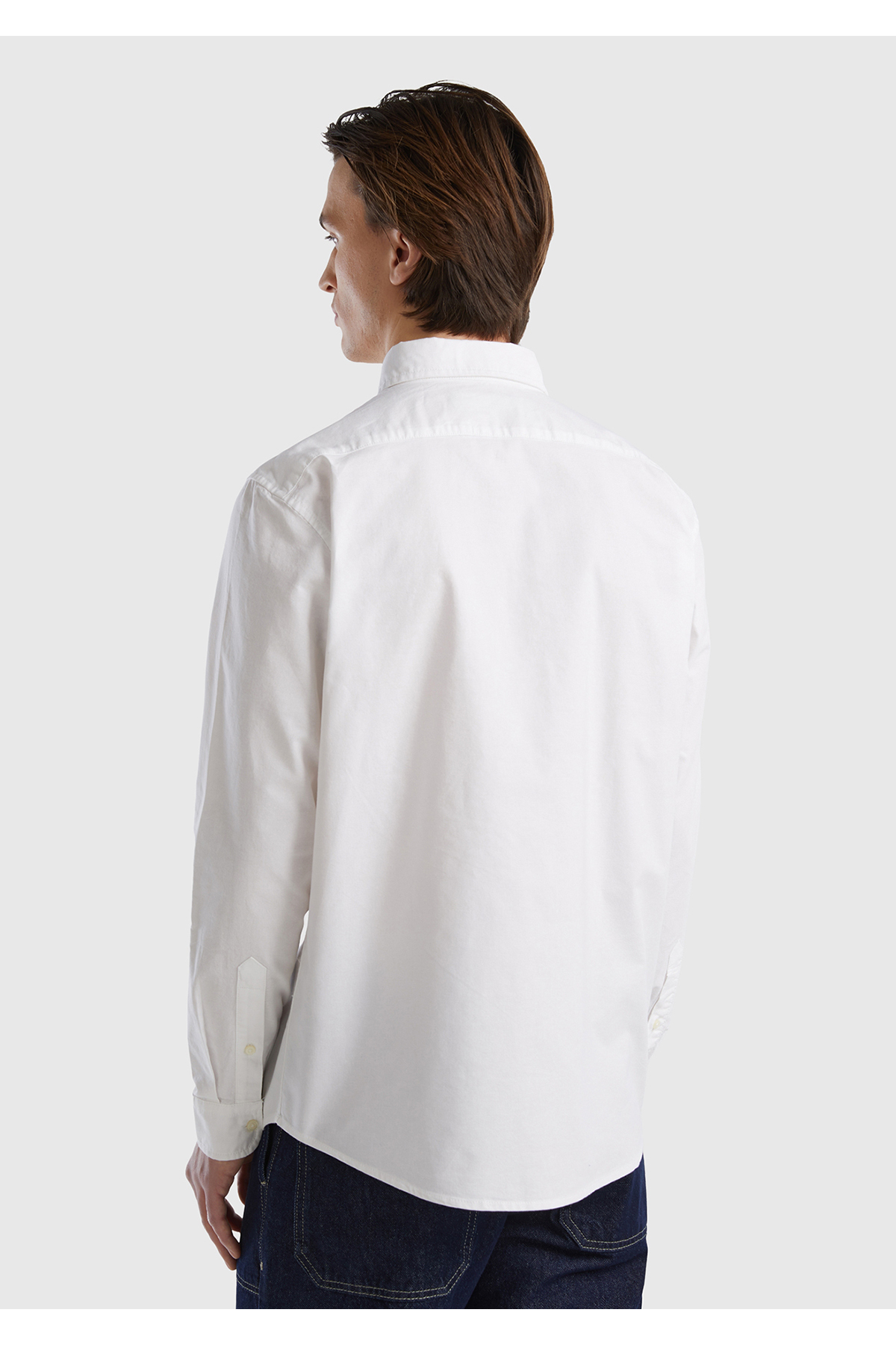 خرید اینترنتی پیراهن مردانه سفید ۱۰۰٪ پنبهای اسلیم فیت با یقه در پشت برند یونایتد کالرز آو بنتون United Colors of Benetton اورجینال از United Colors of Benetton نمایندگی و فروشگاه معتبر ترکیه