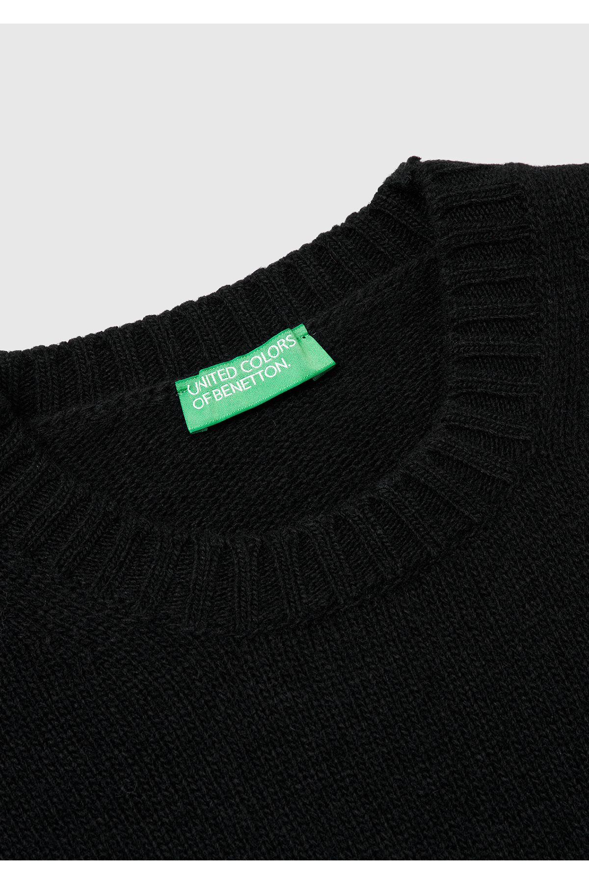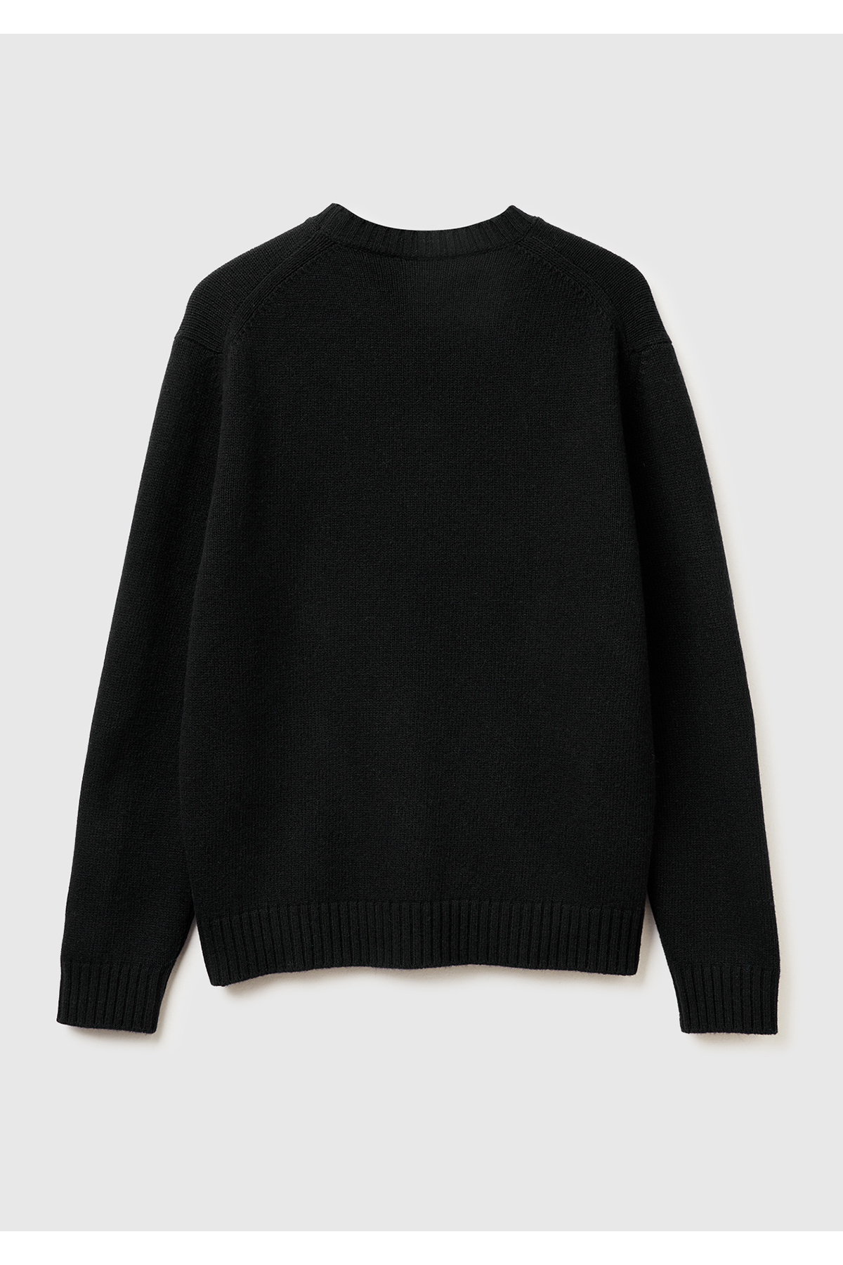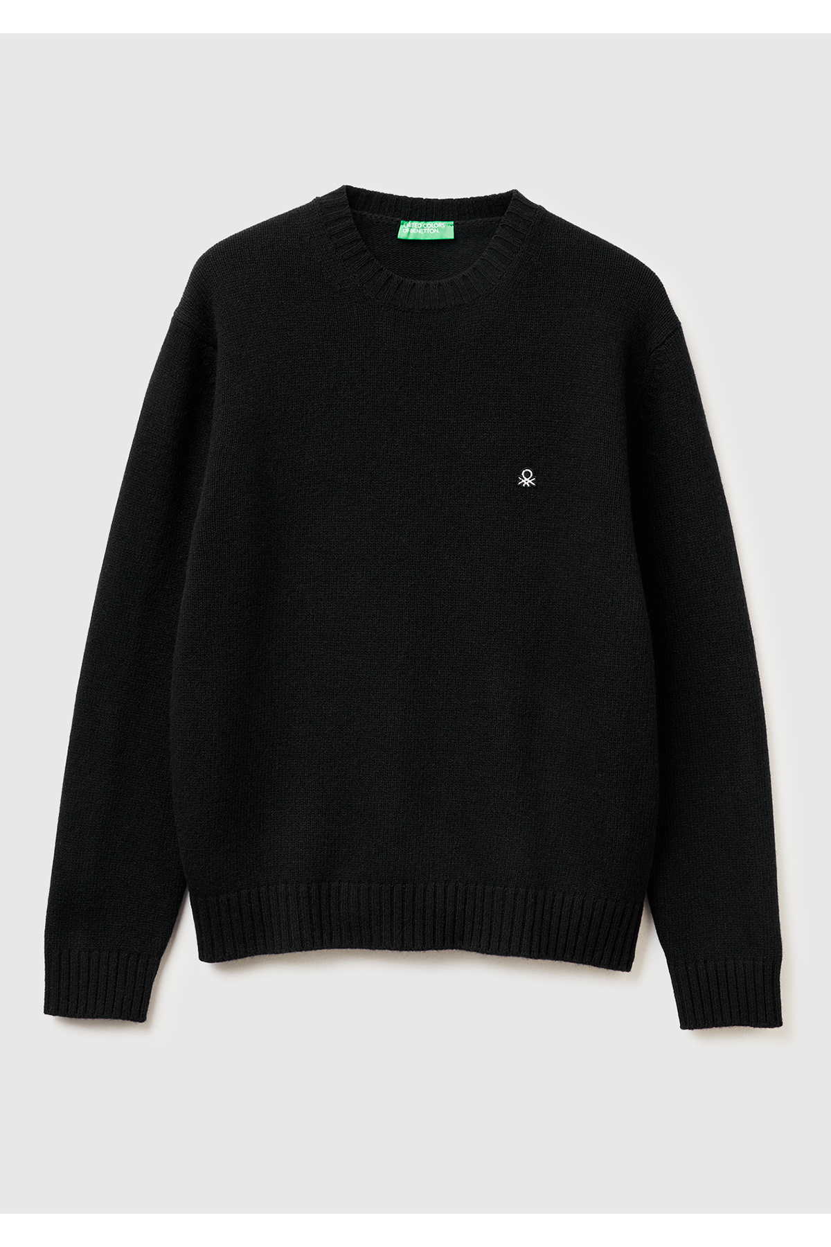 خرید اینترنتی ژاکت مردانه یقه گرد پشمی مشکی طرح ترکیبی با لوگوی گلدوزی شده در جلو برند یونایتد کالرز آو بنتون United Colors of Benetton اورجینال از United Colors of Benetton نمایندگی ترکیه