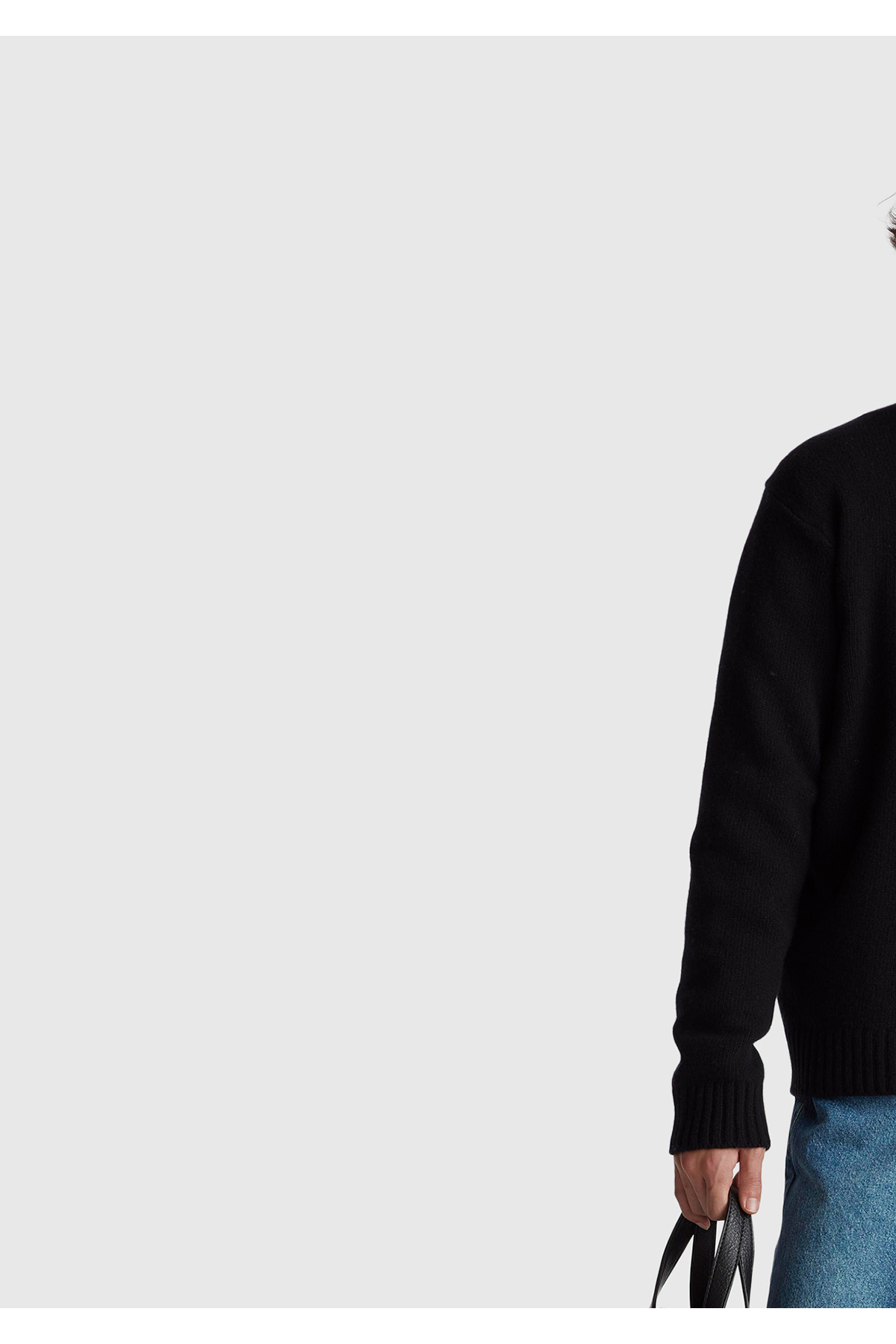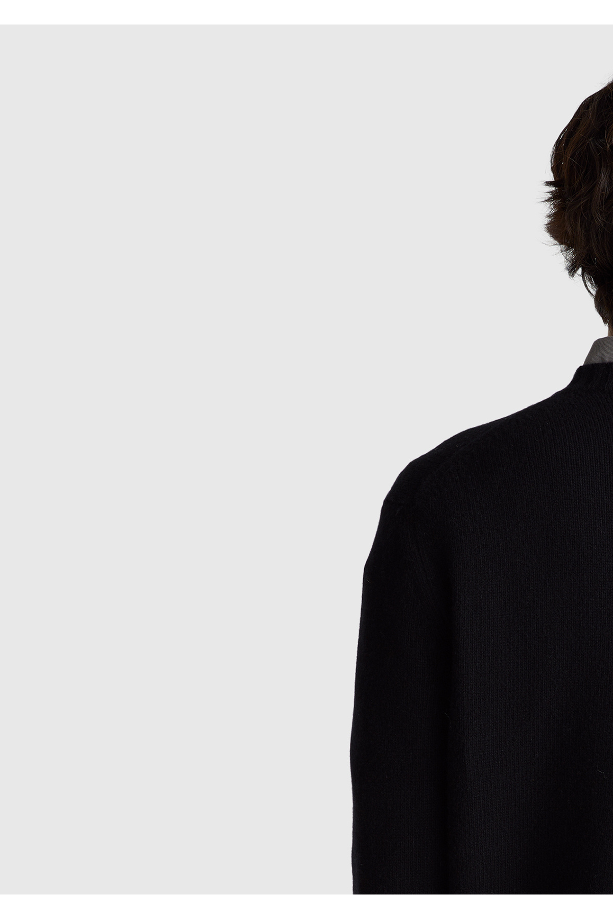 خرید اینترنتی ژاکت مردانه یقه گرد پشمی مشکی طرح ترکیبی با لوگوی گلدوزی شده در جلو برند یونایتد کالرز آو بنتون United Colors of Benetton اورجینال از United Colors of Benetton نمایندگی و فروشگاه معتبر ترکیه