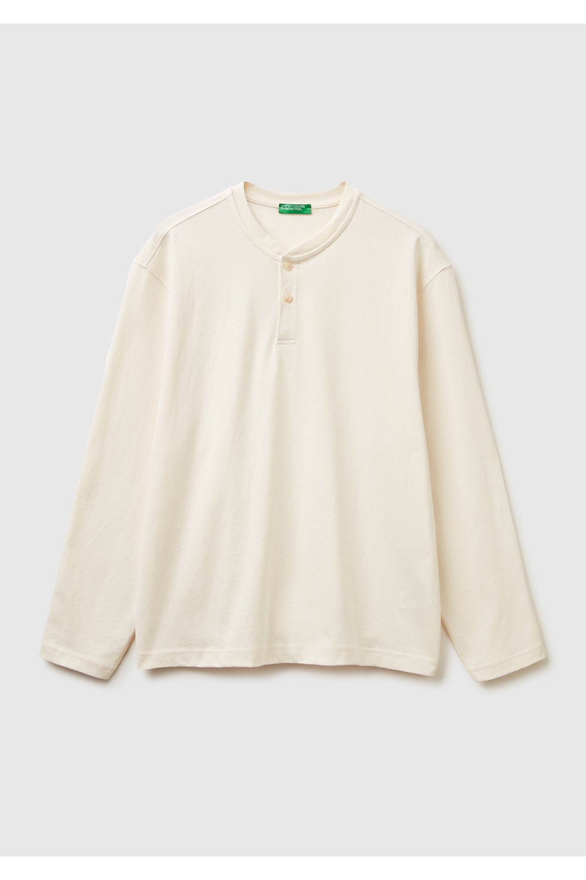 خرید اینترنتی تی‌شرت آستین بلند یقه گرد جلو دکمه‌دار مردانه، ۱۰۰٪ پنبه، کرم رنگ برند یونایتد کالرز آو بنتون United Colors of Benetton اورجینال از United Colors of Benetton نمایندگی ترکیه