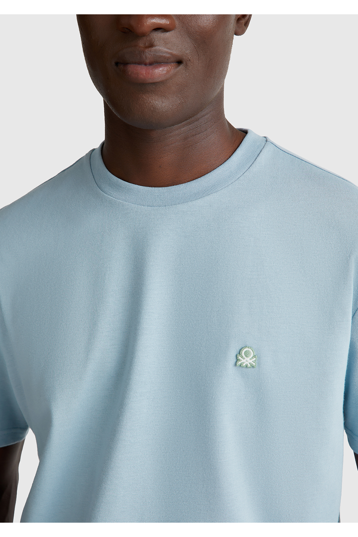 خرید اینترنتی تیشرت یقه گرد مردانه ۱۰۰٪ پنبهای آبی روشن با لوگوی بنتون برند یونایتد کالرز آو بنتون United Colors of Benetton اورجینال از United Colors of Benetton نمایندگی و فروشگاه معتبر ترکیه
