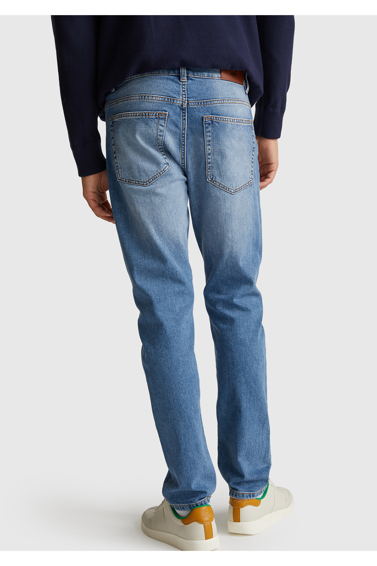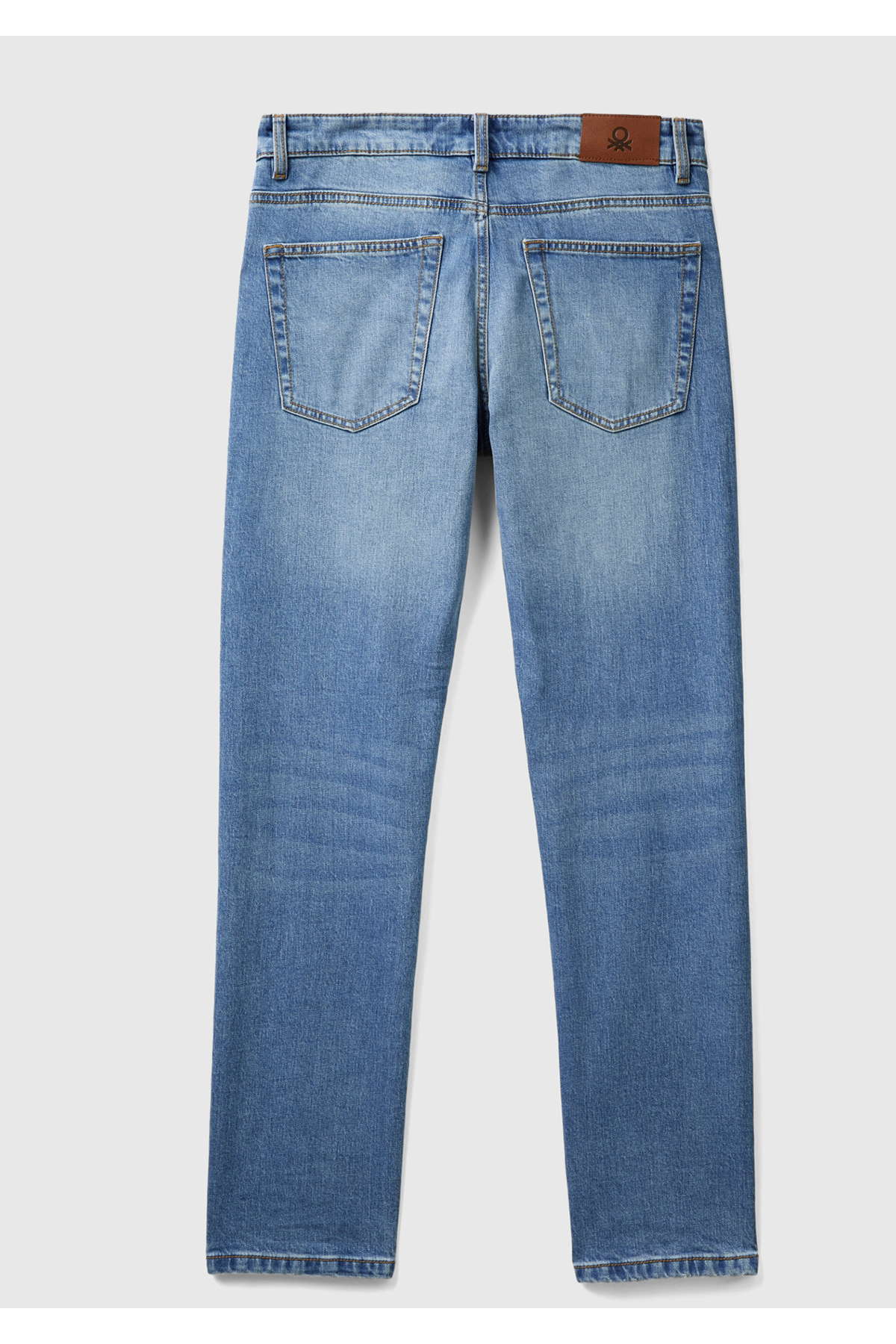خرید اینترنتی شلوار جین مردانه اسلیم فیت طرح ترکیبی پنبه آبی روشن با برچسب لوگوی پشت و جیب برند یونایتد کالرز آو بنتون United Colors of Benetton اورجینال از United Colors of Benetton نمایندگی ترکیه