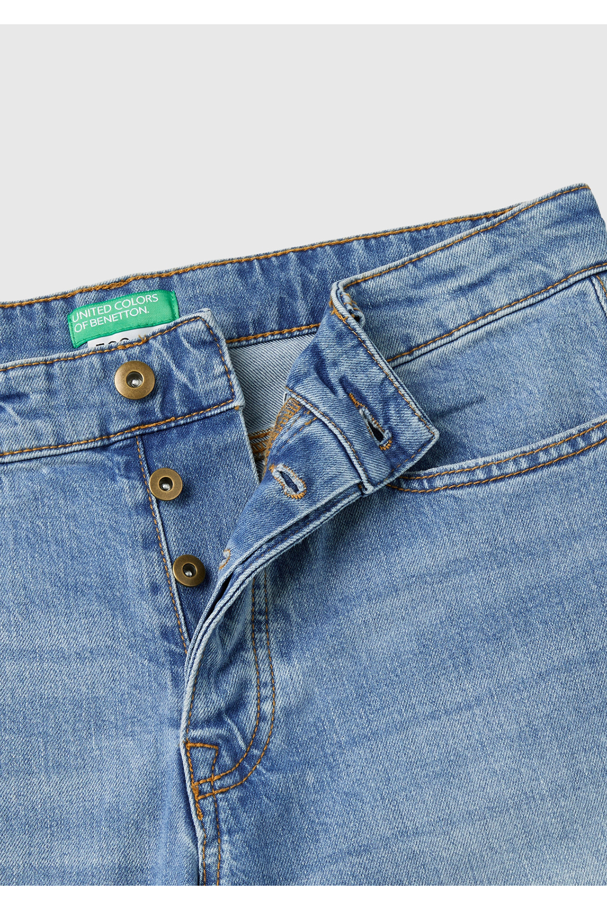 خرید اینترنتی شلوار جین مردانه اسلیم فیت طرح ترکیبی پنبه آبی روشن با برچسب لوگوی پشت و جیب برند یونایتد کالرز آو بنتون United Colors of Benetton اورجینال از United Colors of Benetton نمایندگی و فروشگاه معتبر ترکیه