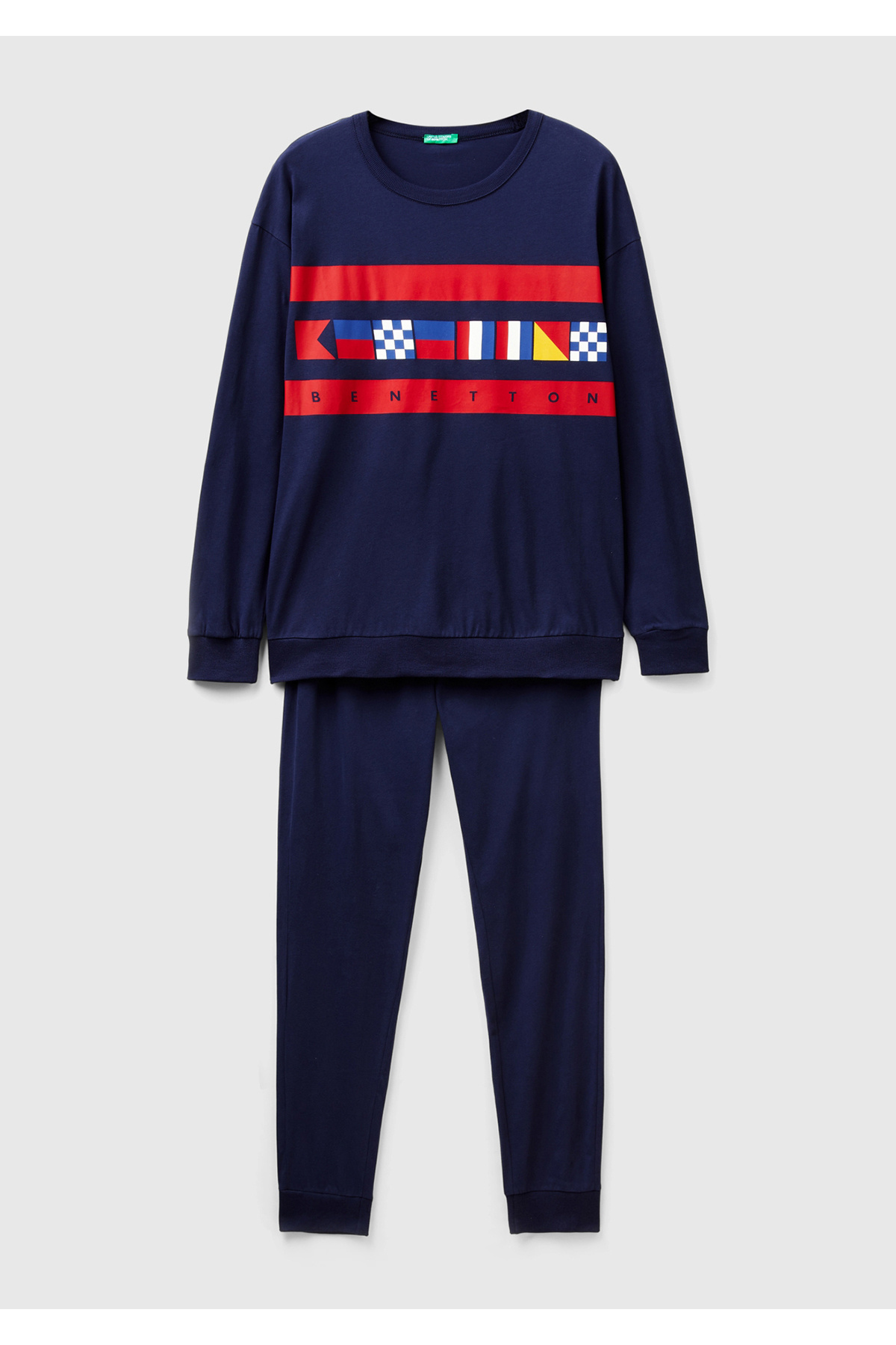 خرید اینترنتی ست لباس خواب مردانه طرح پنبه‌ای سرمه‌ای با جیب‌های طرح‌دار در بالا و پشت برند یونایتد کالرز آو بنتون United Colors of Benetton اورجینال از United Colors of Benetton نمایندگی ترکیه