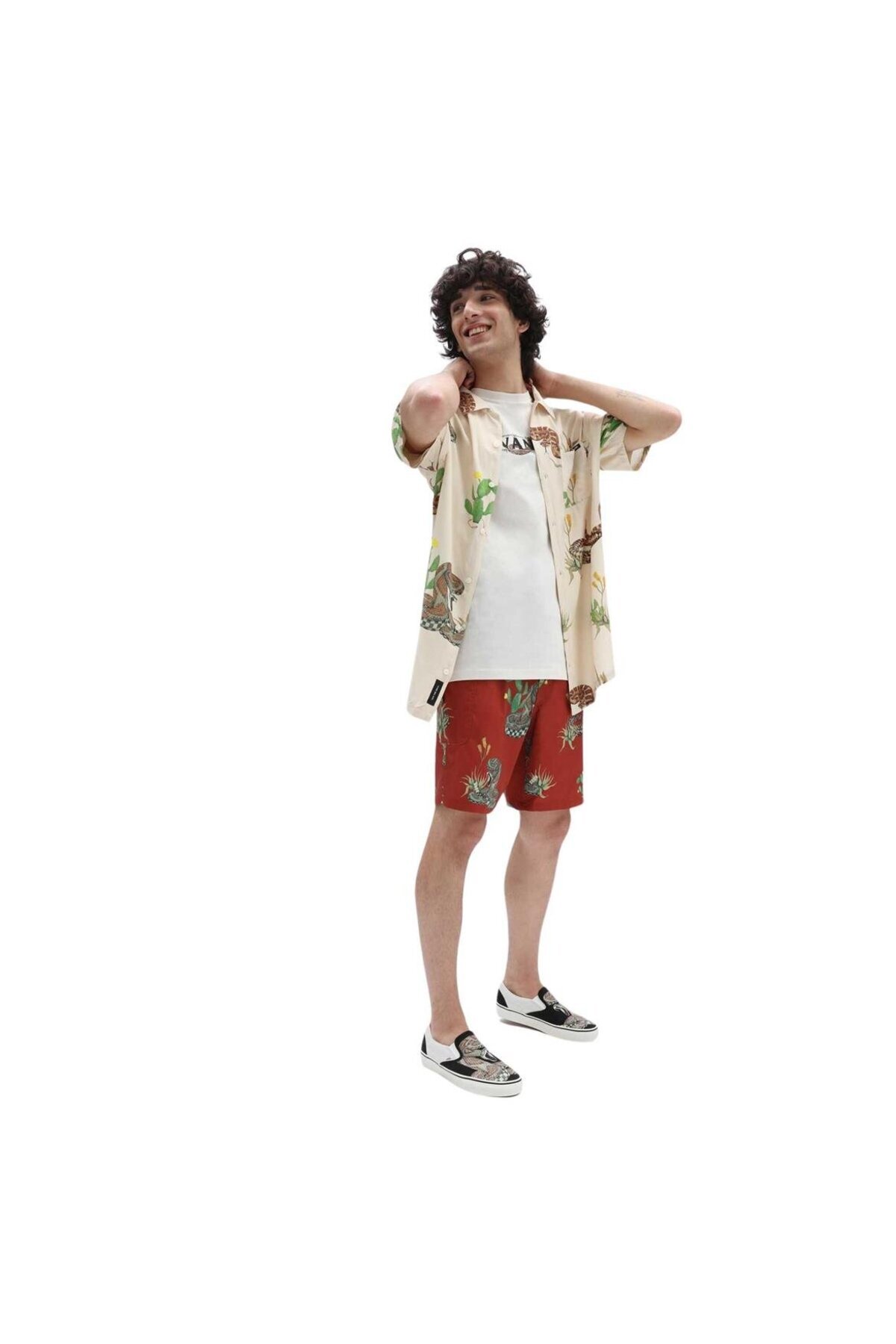 • 100% پلی استر • پارچه کشسان مکانیکی دو طرفه • چاپ سرتاسر • کمر ثابت با بند کشی • جیب بار با فلپ و دکمه • حلقه نگهدارنده روی کمر کمر کد مدل: VN0A5FKXYTT1