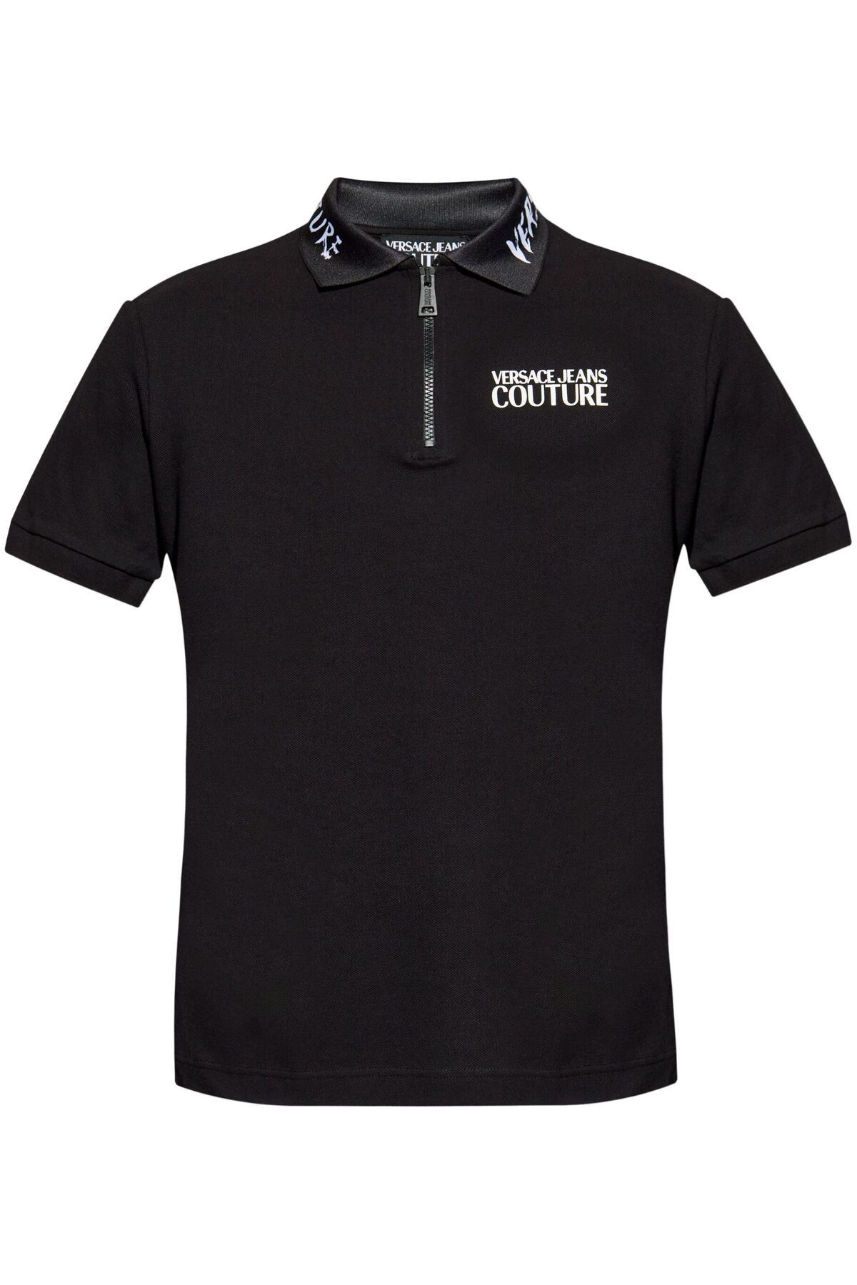 خرید اینترنتی تیشرت آستین کوتاه مردانه طرح نیمزیپ، یقه پولو مشکی چاپشده با لوگو، کد ۷۸gagt03cj01t برند ورساچه Versace اورجینال از Wejaar نمایندگی ترکیه