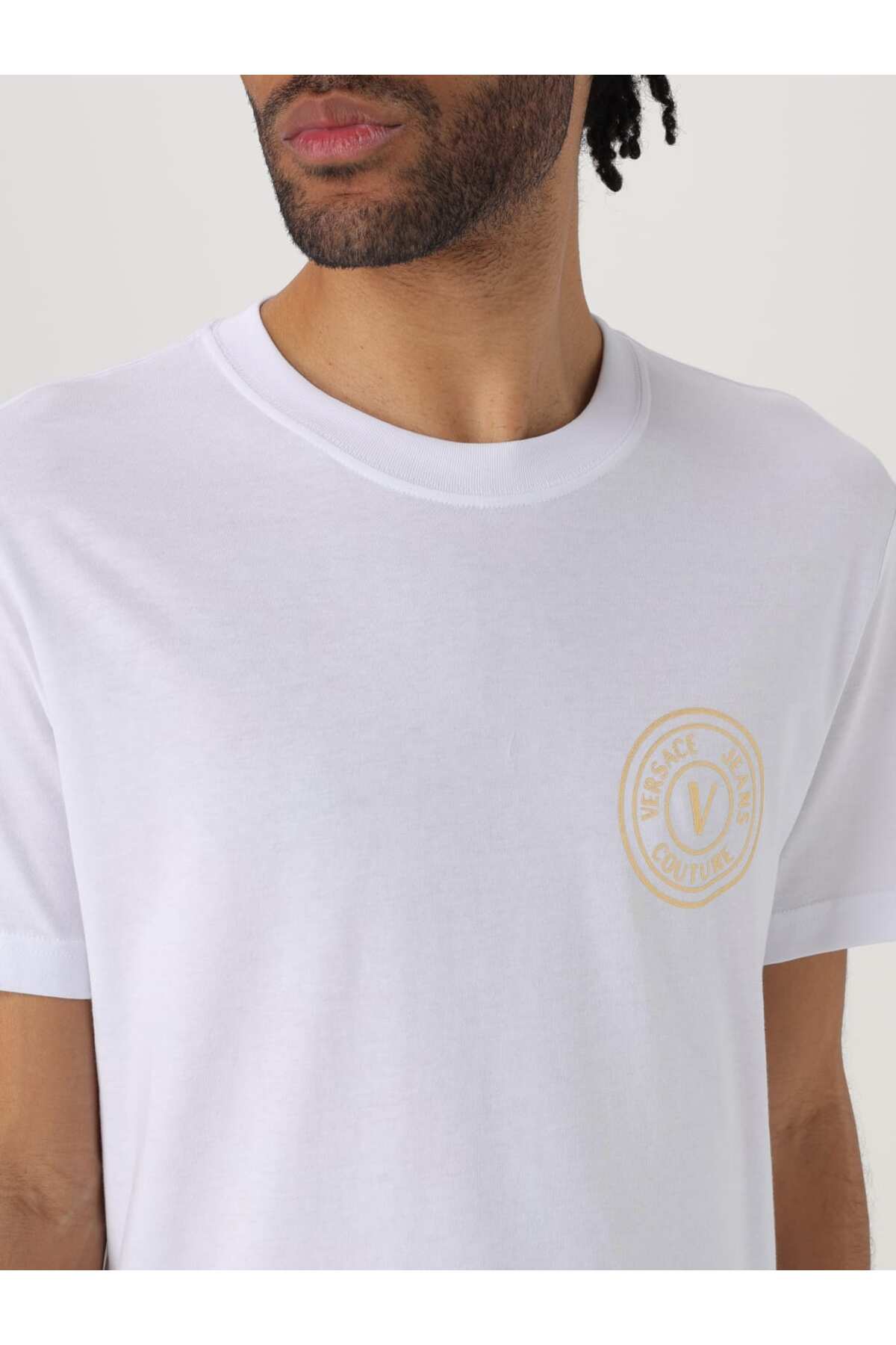 خرید اینترنتی تی‌شرت مردانه سفید با جزئیات لوگوی کوچک، یقه گرد، آستین کوتاه ۷۸gaht00cj00t-g03 برند ورساچه Versace اورجینال از Wejaar نمایندگی ترکیه