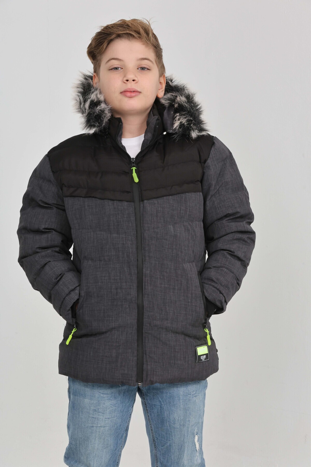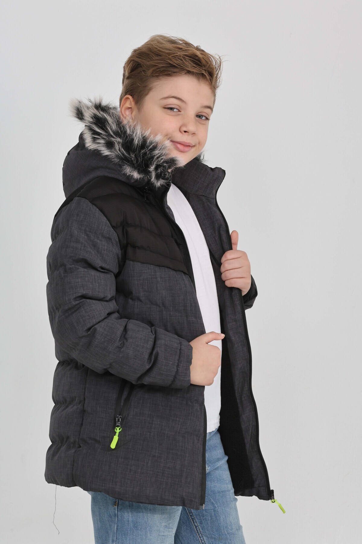 این کاپشن زمستانی پسرانه خاکستری و ضخیم با کلاه خزدار، یک لباس بیرونی بادوام و شیک است که برای ارائه حداکثر گرما و راحتی در هوای سرد طراحی شده است.