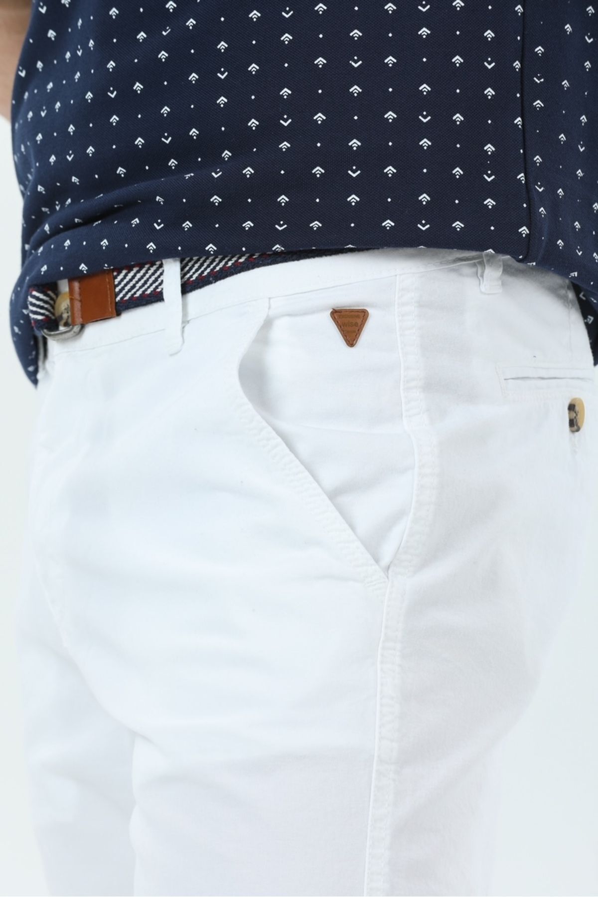خرید اینترنتی شلوارک کاپری مردانه سفید نخی، راحت و مناسب برای همه سنین، دارای جیبهای کناری و کمربند آزاد برند وایز Wise اورجینال از Wisedenim نمایندگی ترکیه