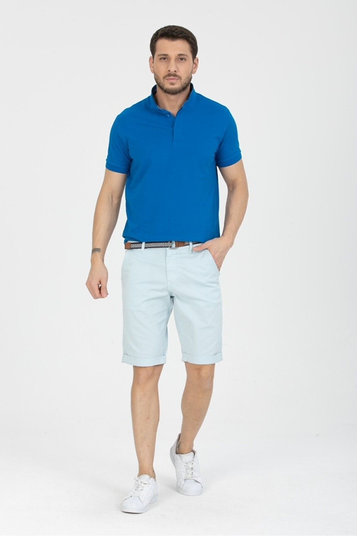خرید اینترنتی شلوارک کاپری مردانه نخی آبی رنگ با جیبهای کناری و کمربند آزاد برند وایز Wise اورجینال از Wisedenim نمایندگی و فروشگاه معتبر ترکیه