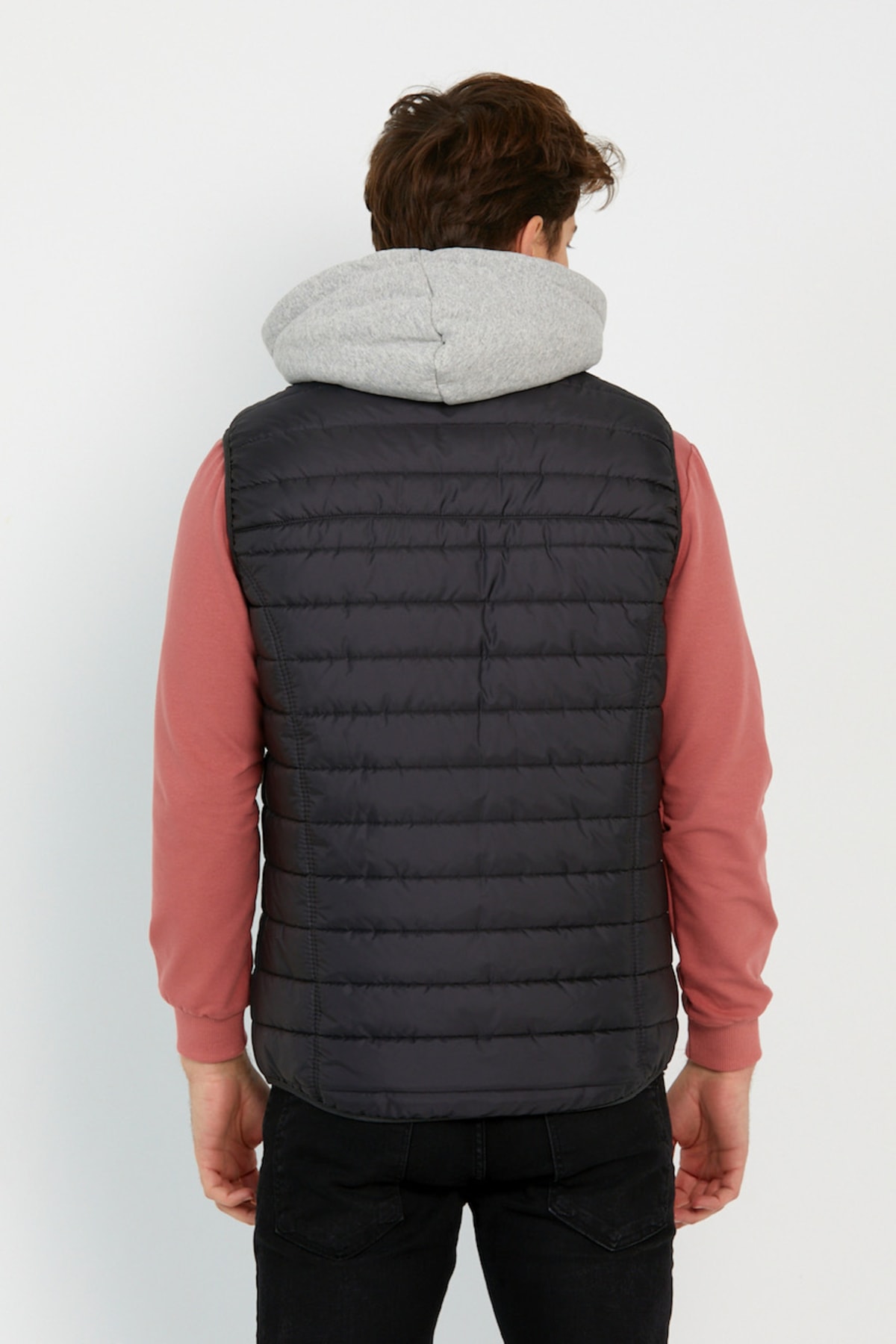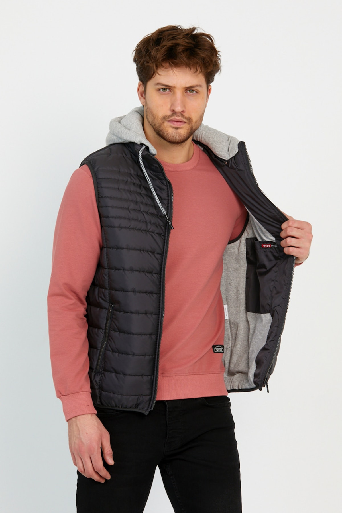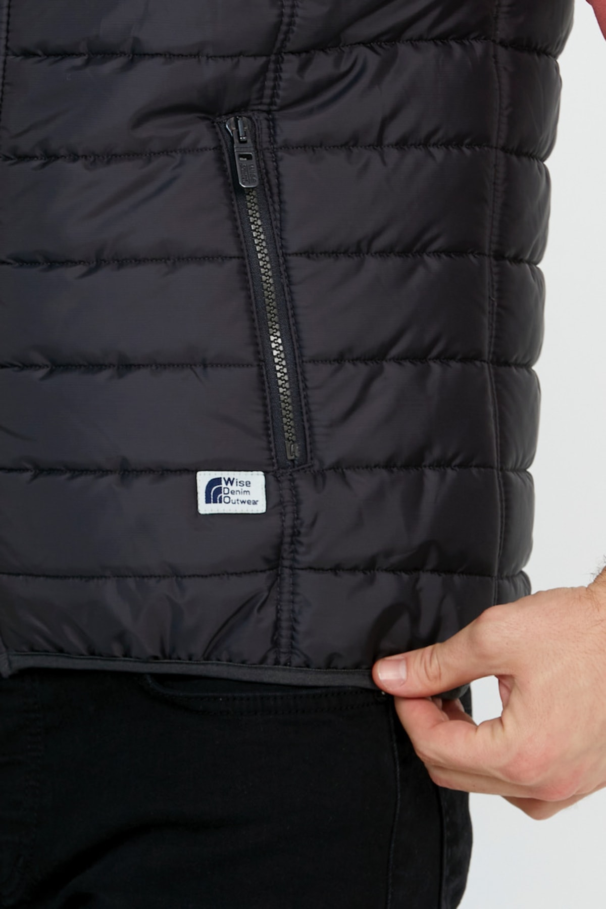 خرید اینترنتی جلیقه پفی مردانه با آستر پنبهای شانه شده و کلاهدار قابل جدا شدن از جنس آنتراسیت برند وایز Wise اورجینال از Wisedenim نمایندگی ترکیه