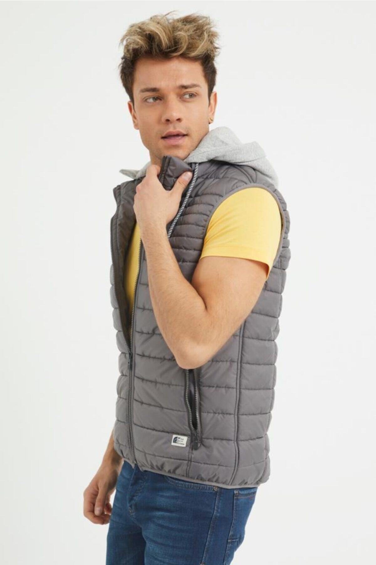 خرید اینترنتی جلیقه پفی مردانه کلاه دار شانه شده با آستر نخی – خاکستری برند وایز Wise اورجینال از Wisedenim نمایندگی ترکیه