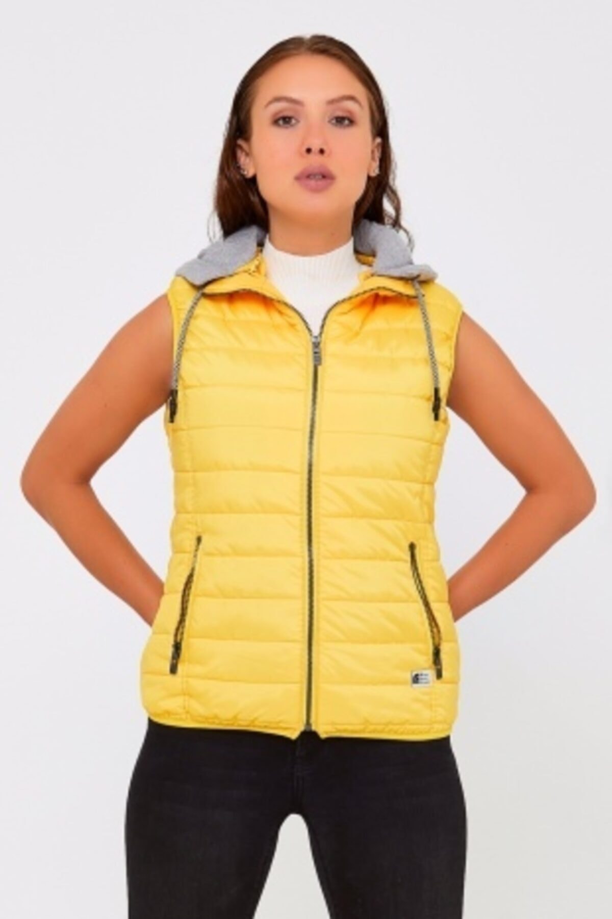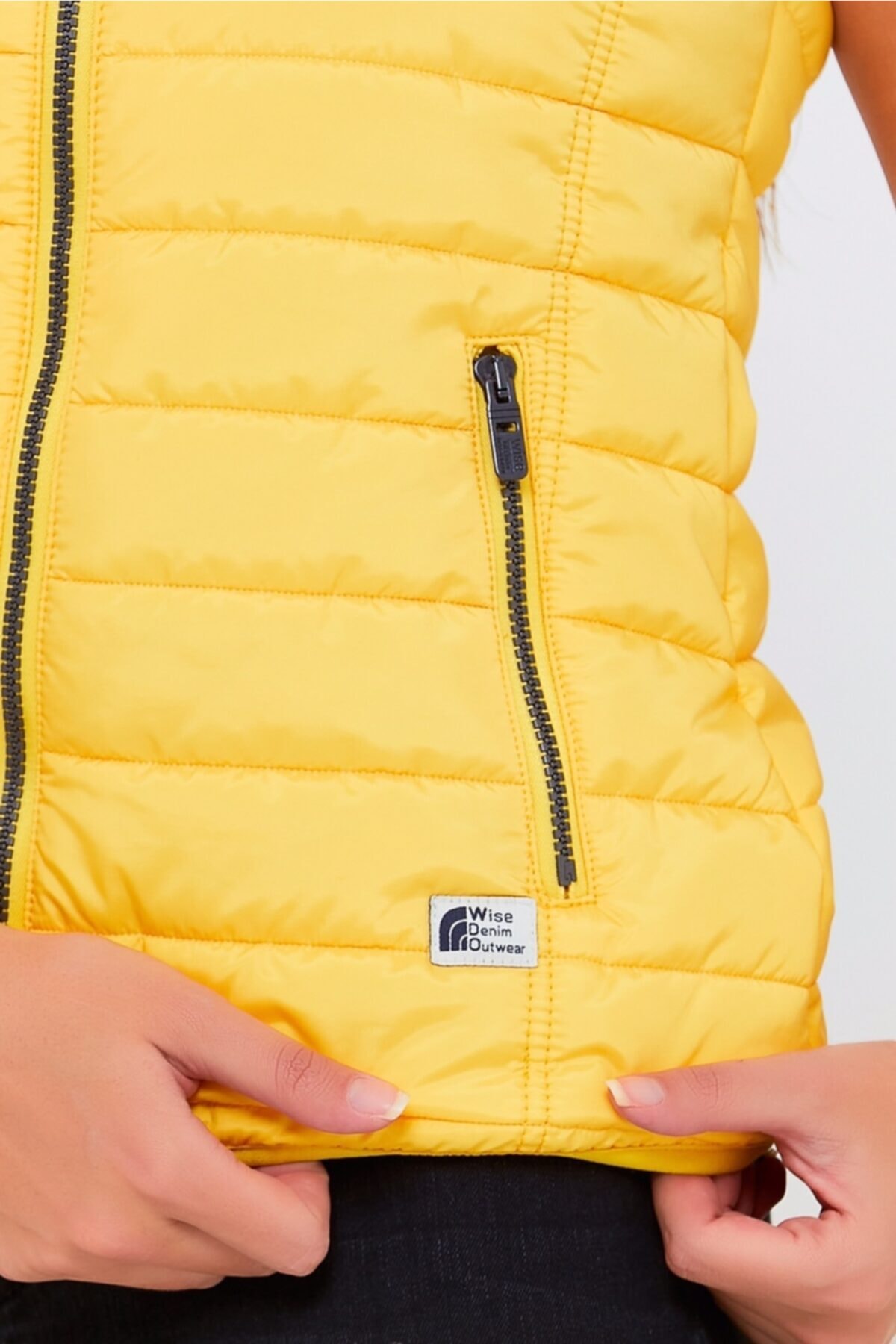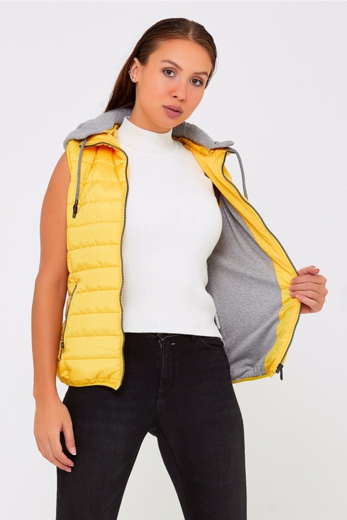 خرید اینترنتی جلیقه پفی زنانه کلاه دار شانه شده با آستر نخی – زرد برند وایز Wise اورجینال از Wisedenim نمایندگی ترکیه