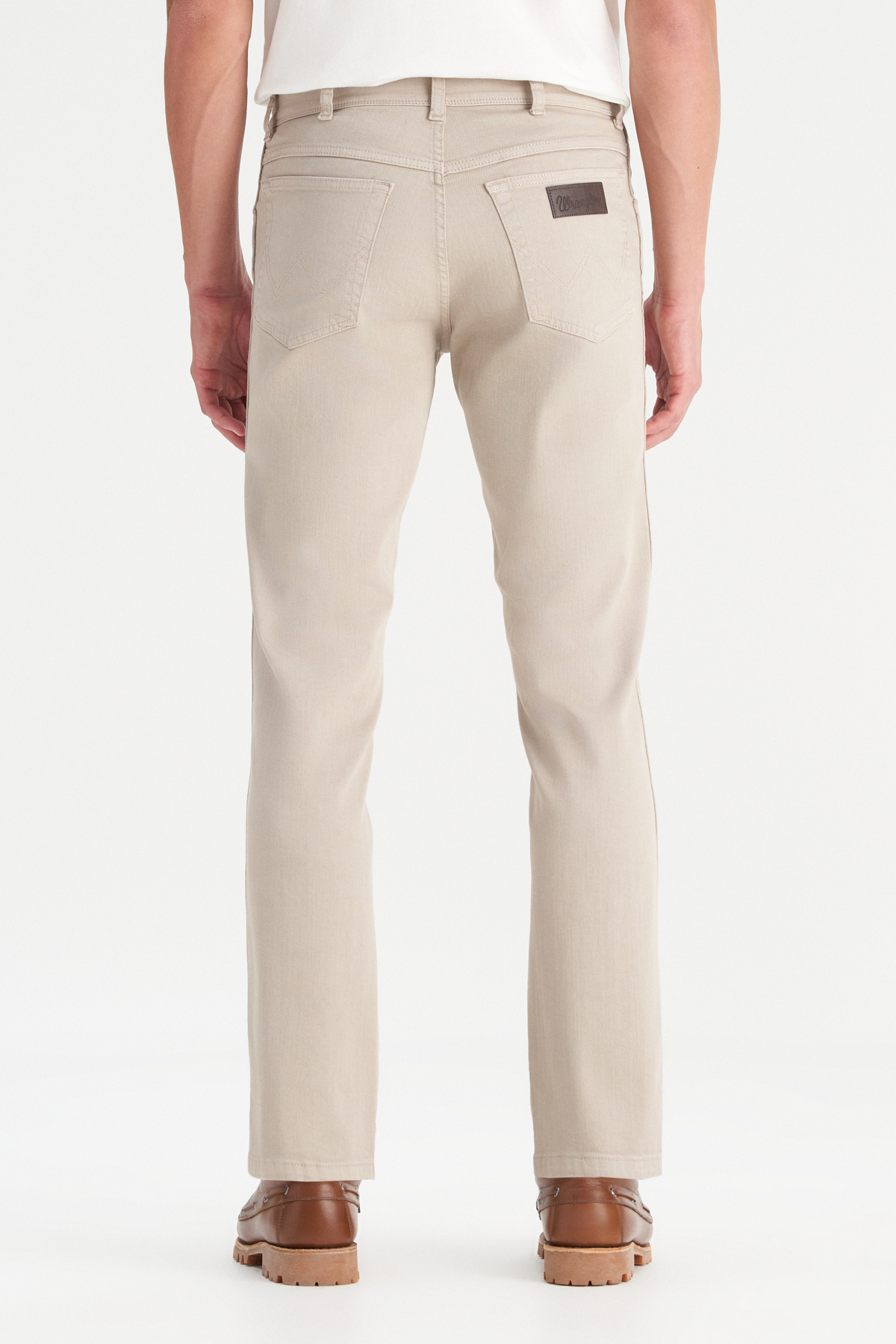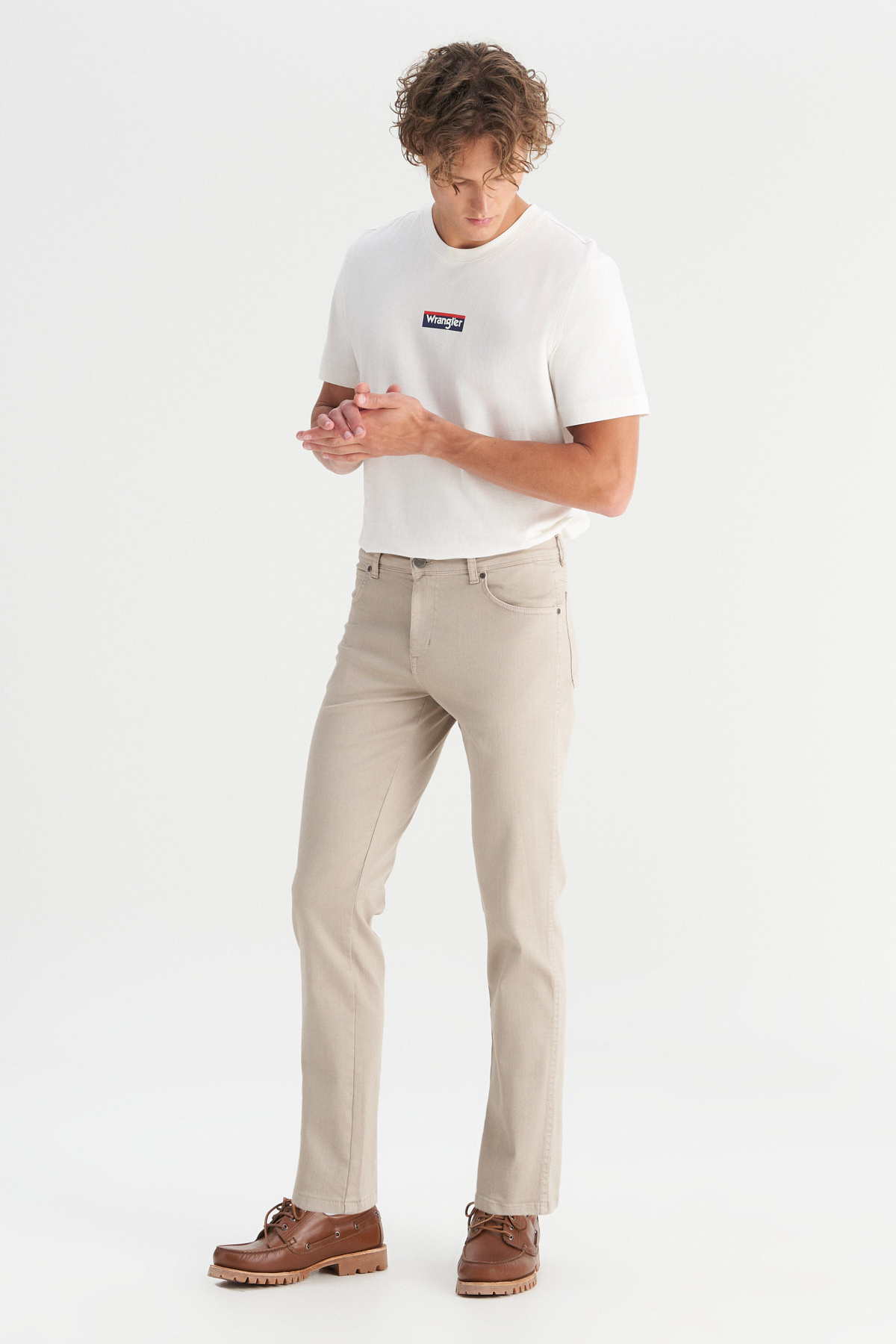 خرید اینترنتی شلوار مردانه تگزاس اسلیم فیت، کمر معمولی، ساق کوتاه، انعطافپذیر، بژ برند رنگلر Wrangler اورجینال از Stp Brand نمایندگی ترکیه