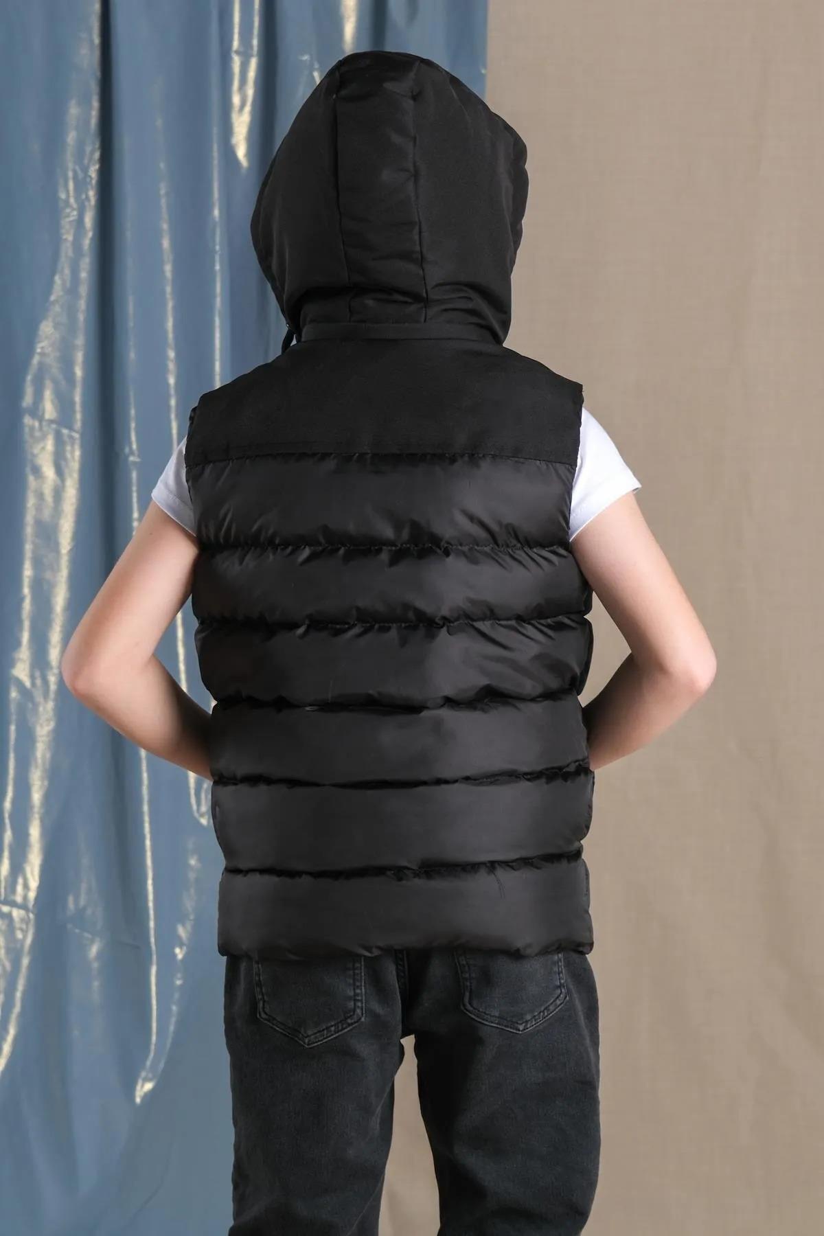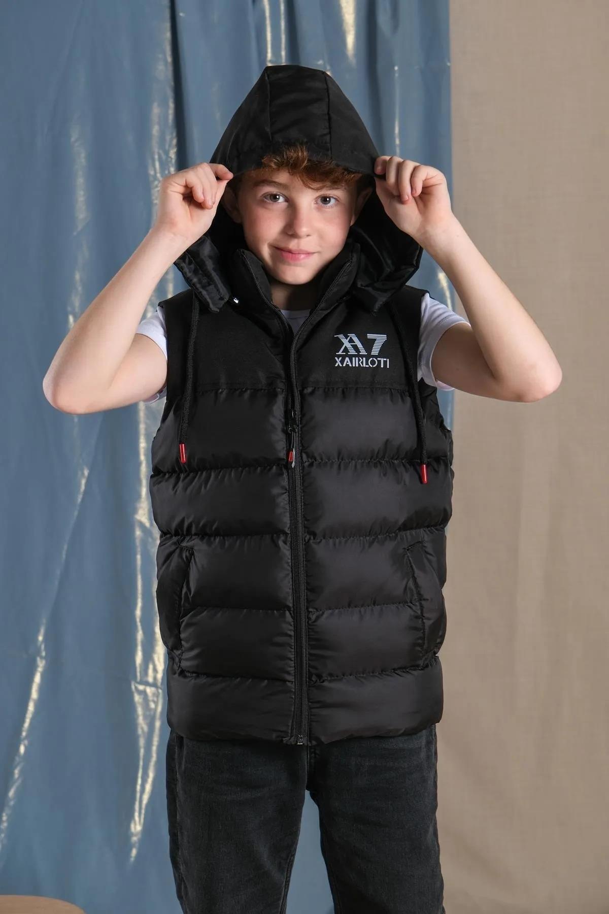 جلیقه ضد آب پسرانه مشکی پددار با کلاه جداشونده YLK.0055 پسرانه پینا کیدز آستین استاندارد راسته | XAIRLOTI 55YLK