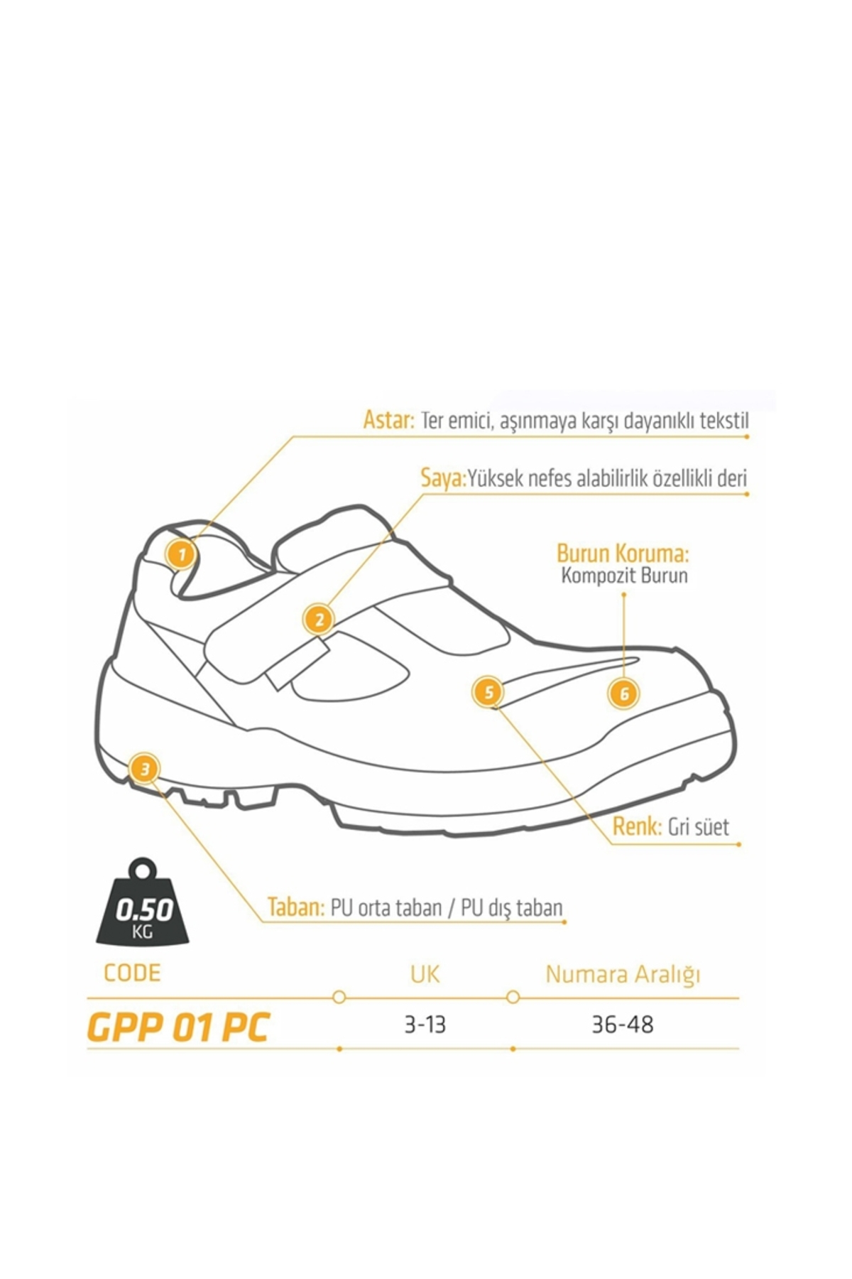 خرید اینترنتی کفش ایمنی کار با پنجه کامپوزیت Gpp 01 PC برند YDS اورجینال از Yıldırımlar Giyim A.Ş نمایندگی ترکیه