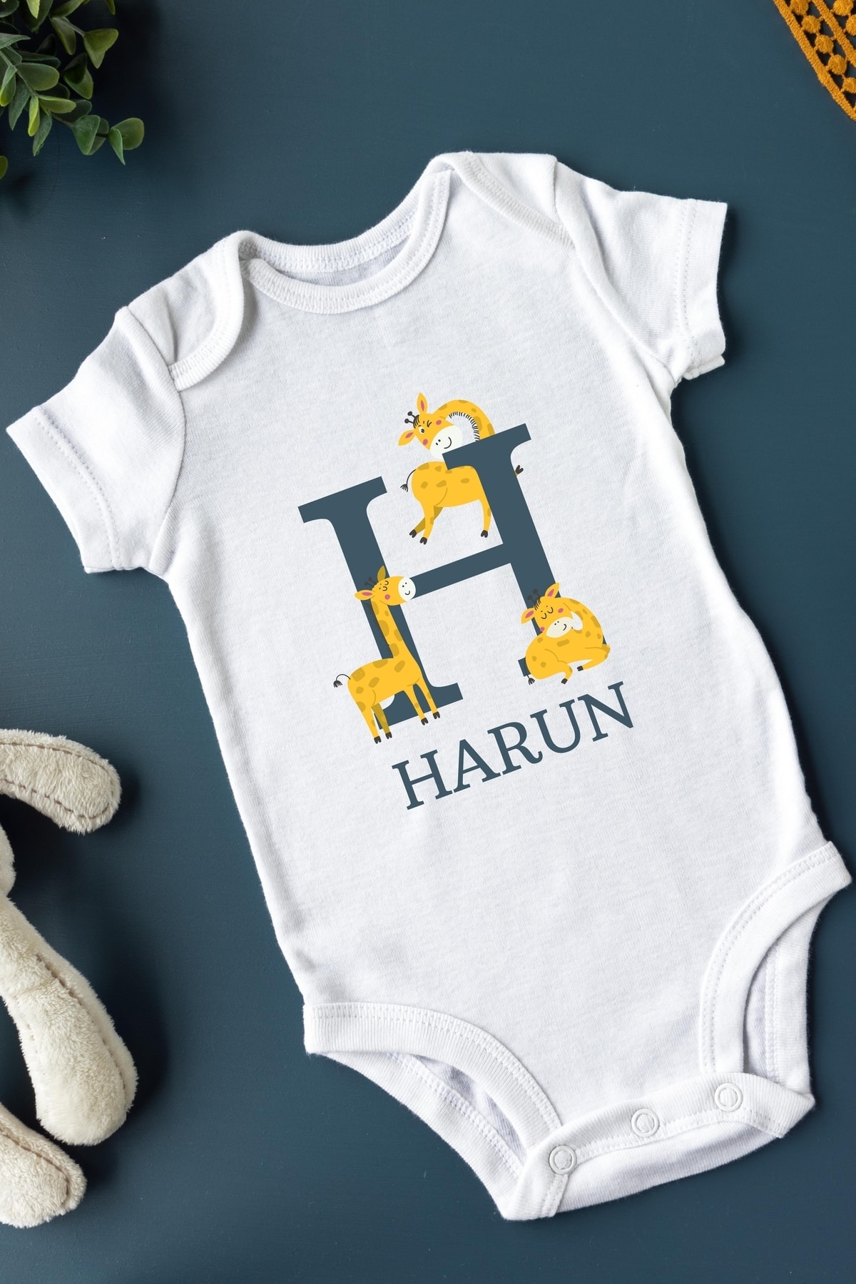 خرید اینترنتی بادی نوزادی سفید نخی با چاپ حروف و نام شخصی برند YENİCE اورجینال از Cactus Baby İzmir نمایندگی و فروشگاه معتبر ترکیه