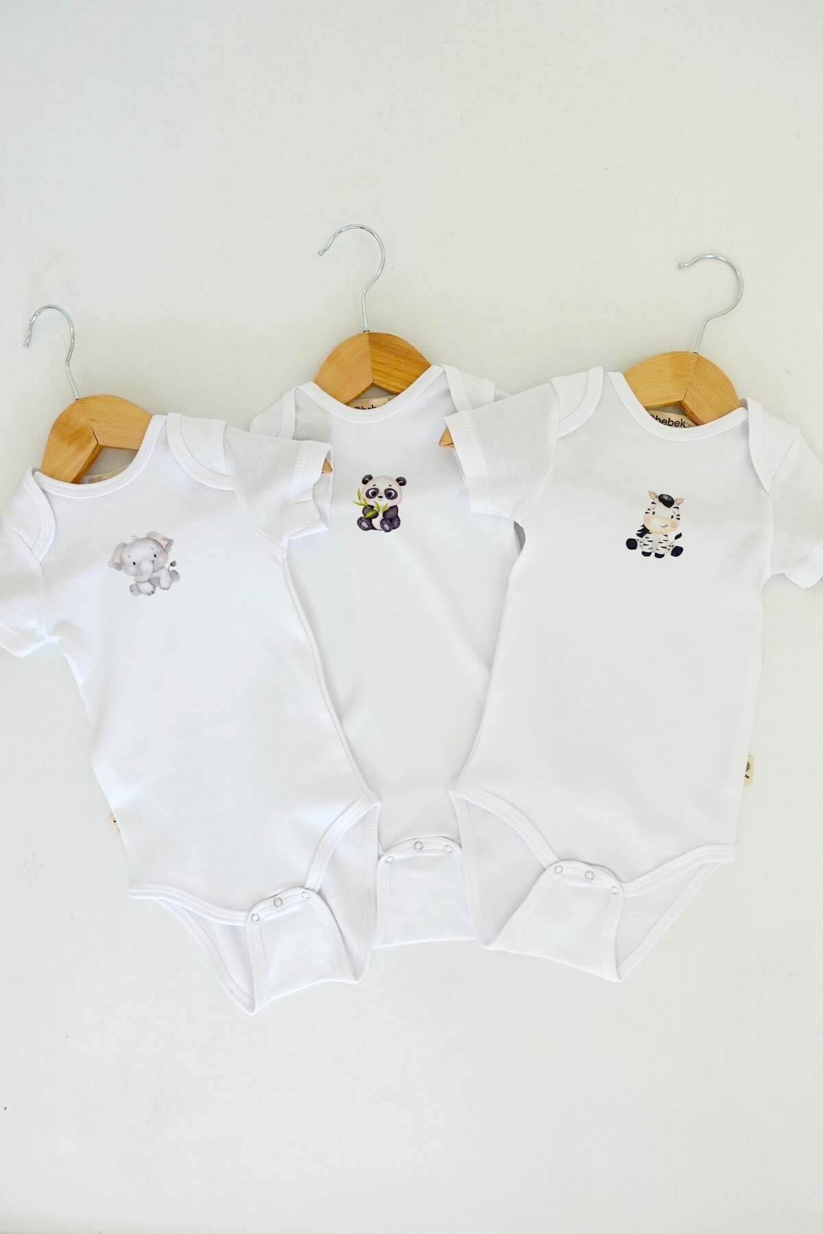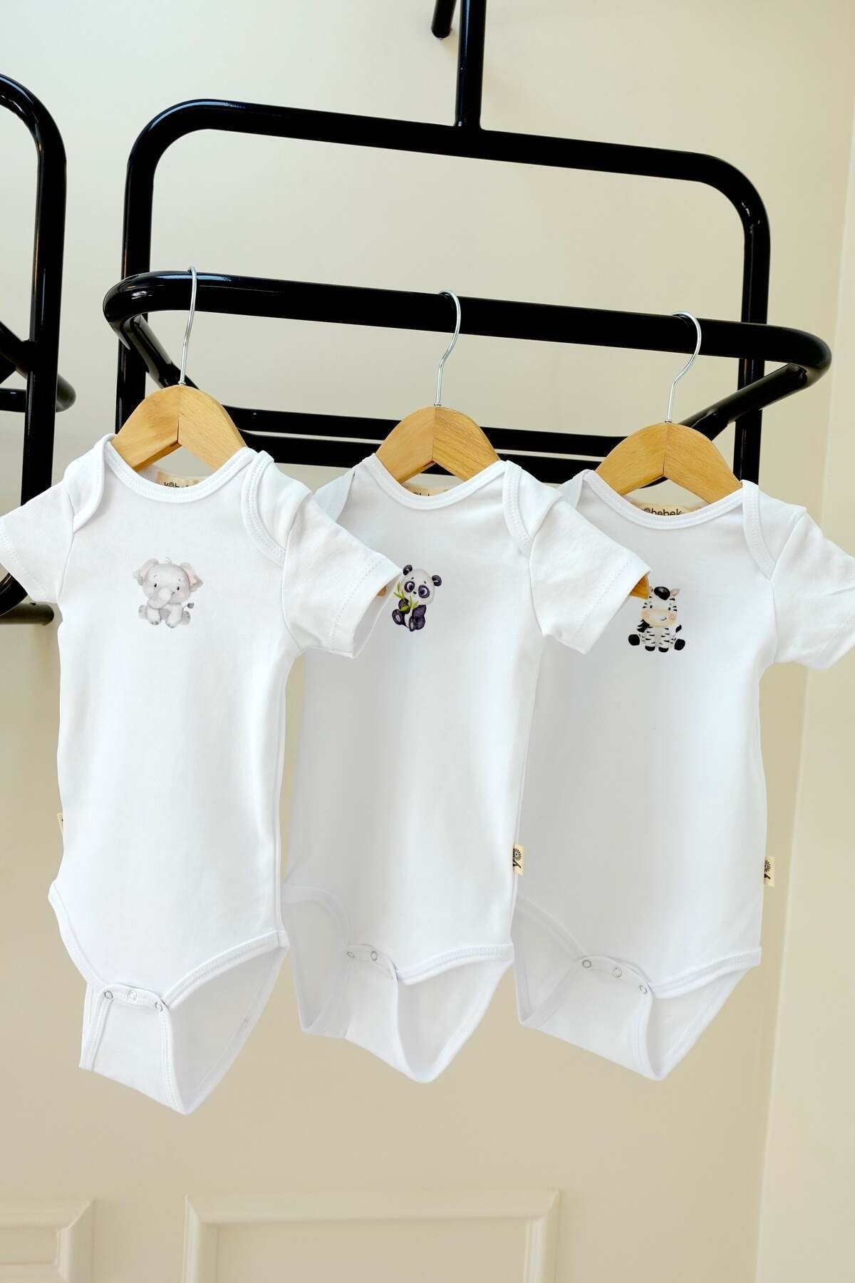 این بادی نوزادی سفید با طرح حیوانات، با طراحی نرم و شیک خود، با دقت برای راحتی کودک شما طراحی شده است.