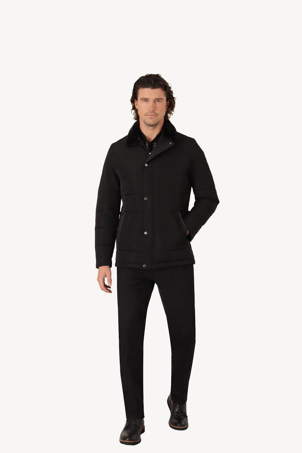 YSF Giyim، پیشگام سبک ماندگار و لوکس، سبک هوای سرد شما را با پالتوی مردانه مشکی طرحدار یقه خز، یکی از محبوبترین قطعات مجموعه پاییز-زمستان خود، ارتقا میدهد.