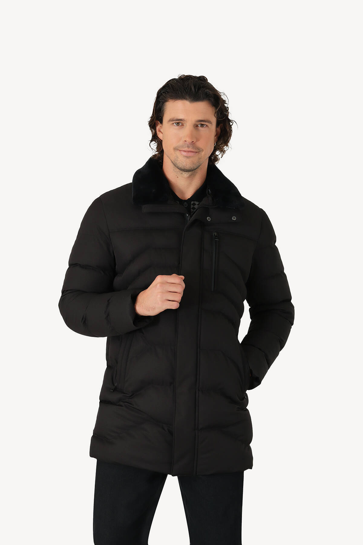 خرید اینترنتی کاپشن بلند مردانه یقه خزدار مشکی معمولی برند YSF اورجینال از YSF GİYİM نمایندگی و فروشگاه معتبر ترکیه