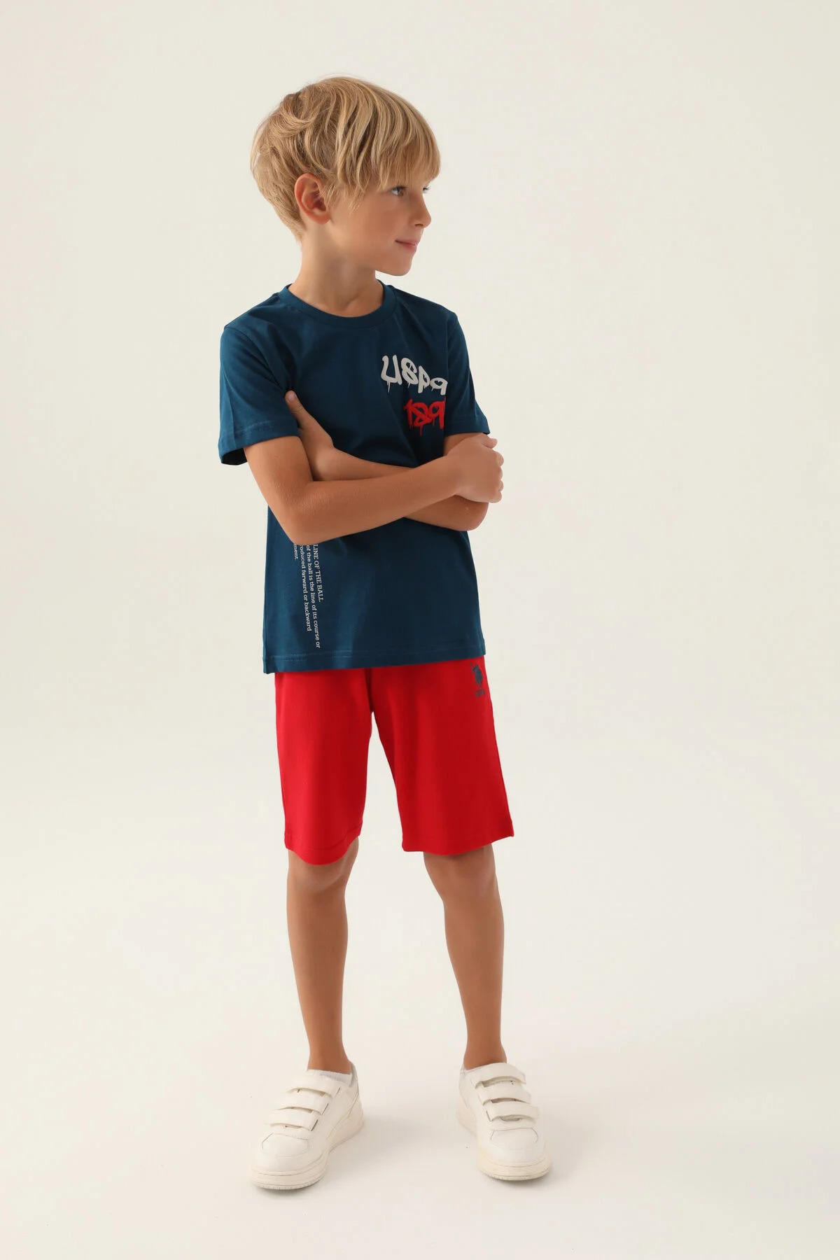 ست پیژامه و لباس خواب پسرانه یو اس پولو فاق نرمال آستین کوتاه طرح دار | U.S. Polo Assn. U0624Y01722G