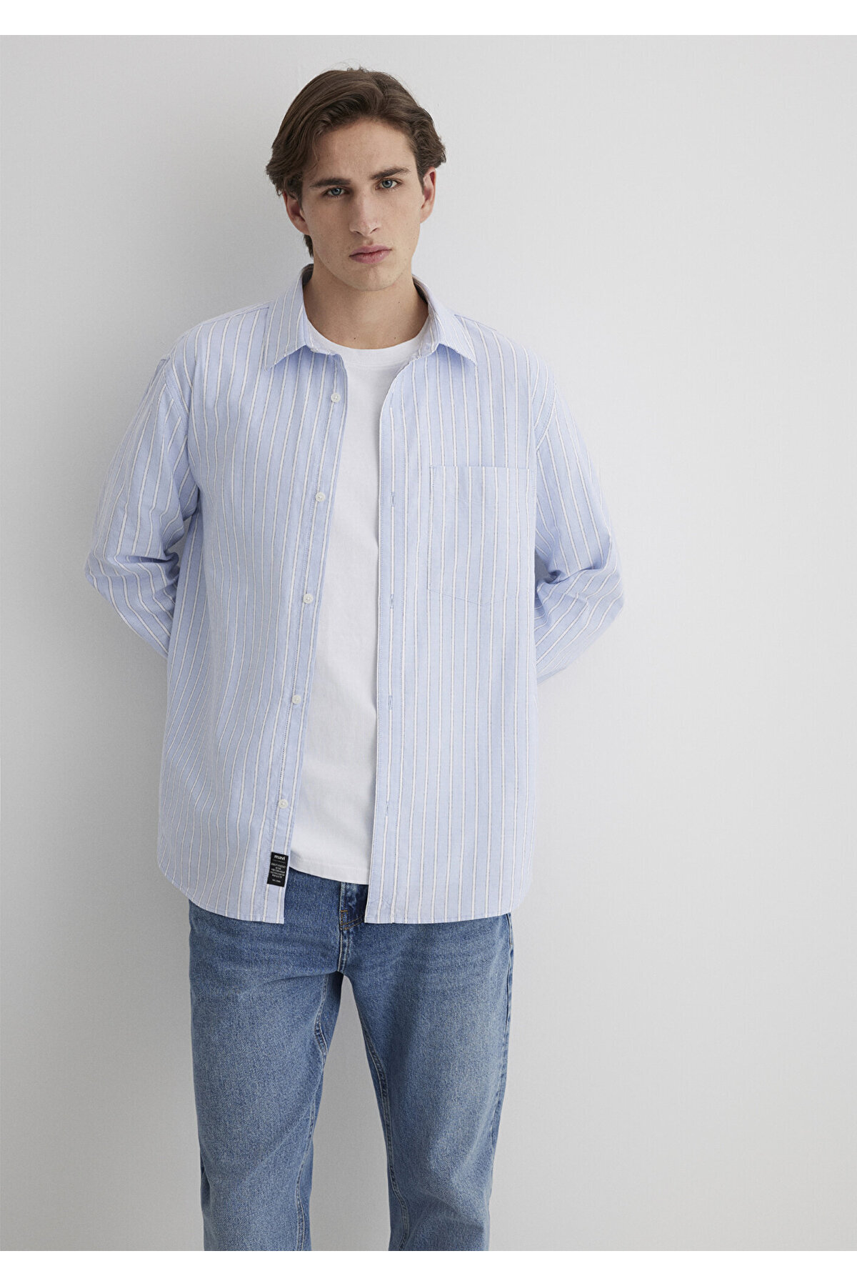 ماوی پیراهن آبی راه راه با تناسب معمولی / برش معمولی 0211416-70816