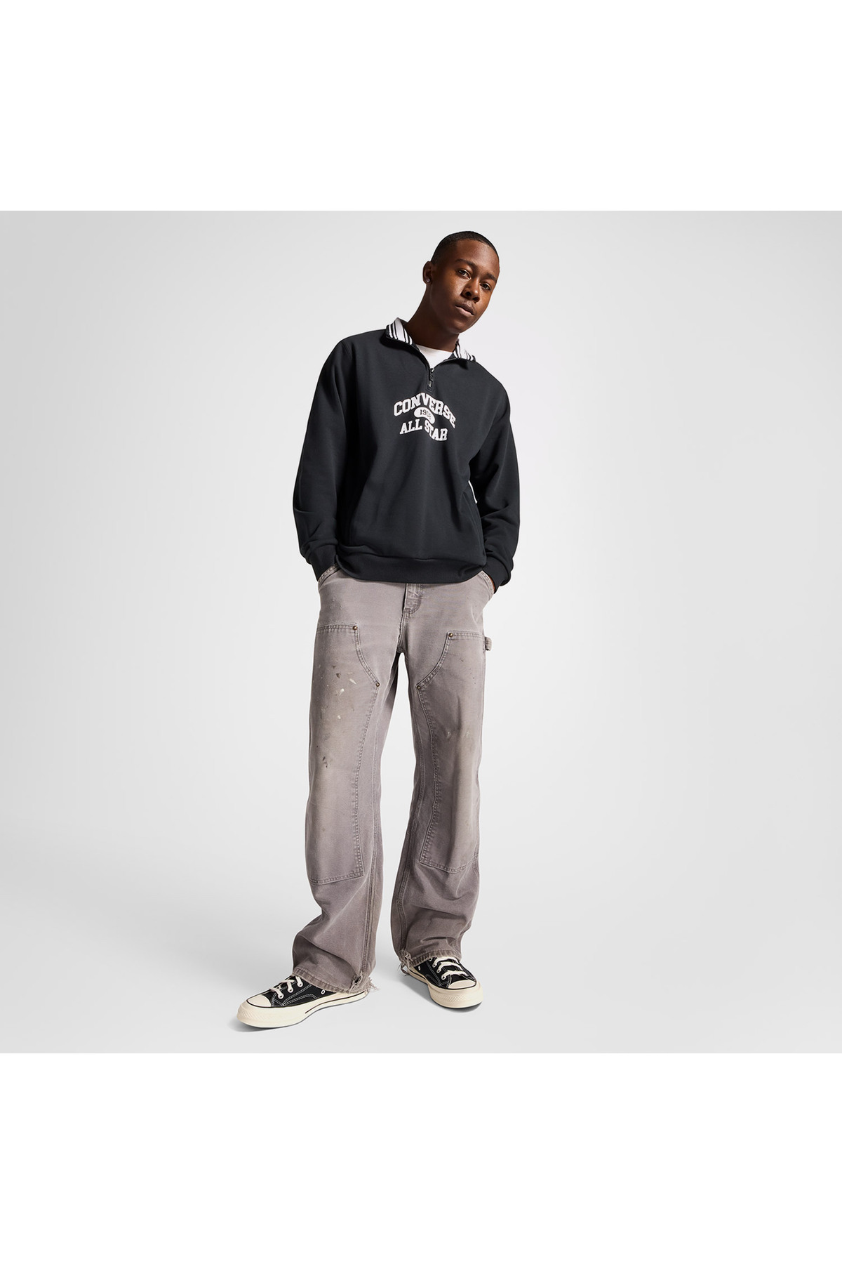 کانورس سویشرت مردانه مشکی نیمه زیپ کلاسیک اسپرت