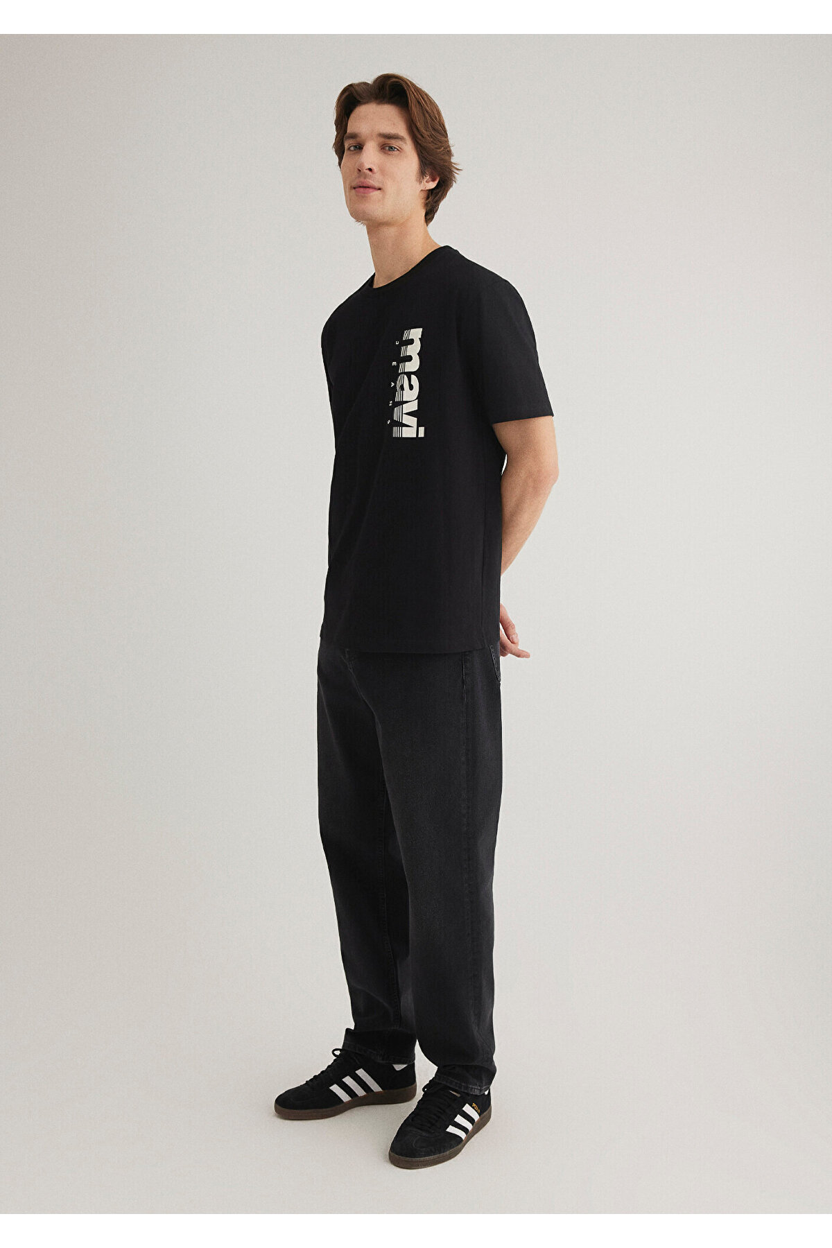 ماوی تی شرت مشکی چاپ جین شل و گشاد / برش راحت گشاد 0611745-900