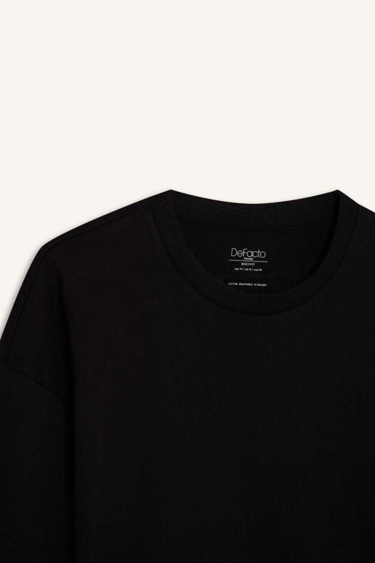 دفاکتو تی شرت مشکی آستین کوتاه 100% پنبه ای با یقه خدمه ساده D6070ax25sp