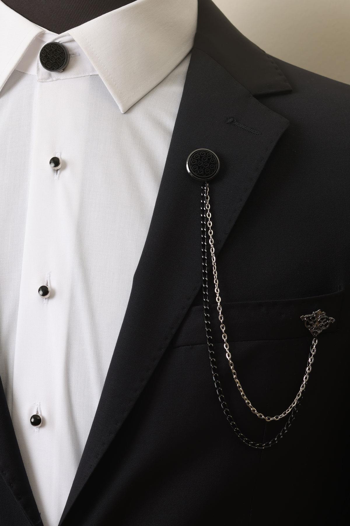 زنجیرو پین یقه کت مردانه طرح دار | Esgue ESG450CKT1036