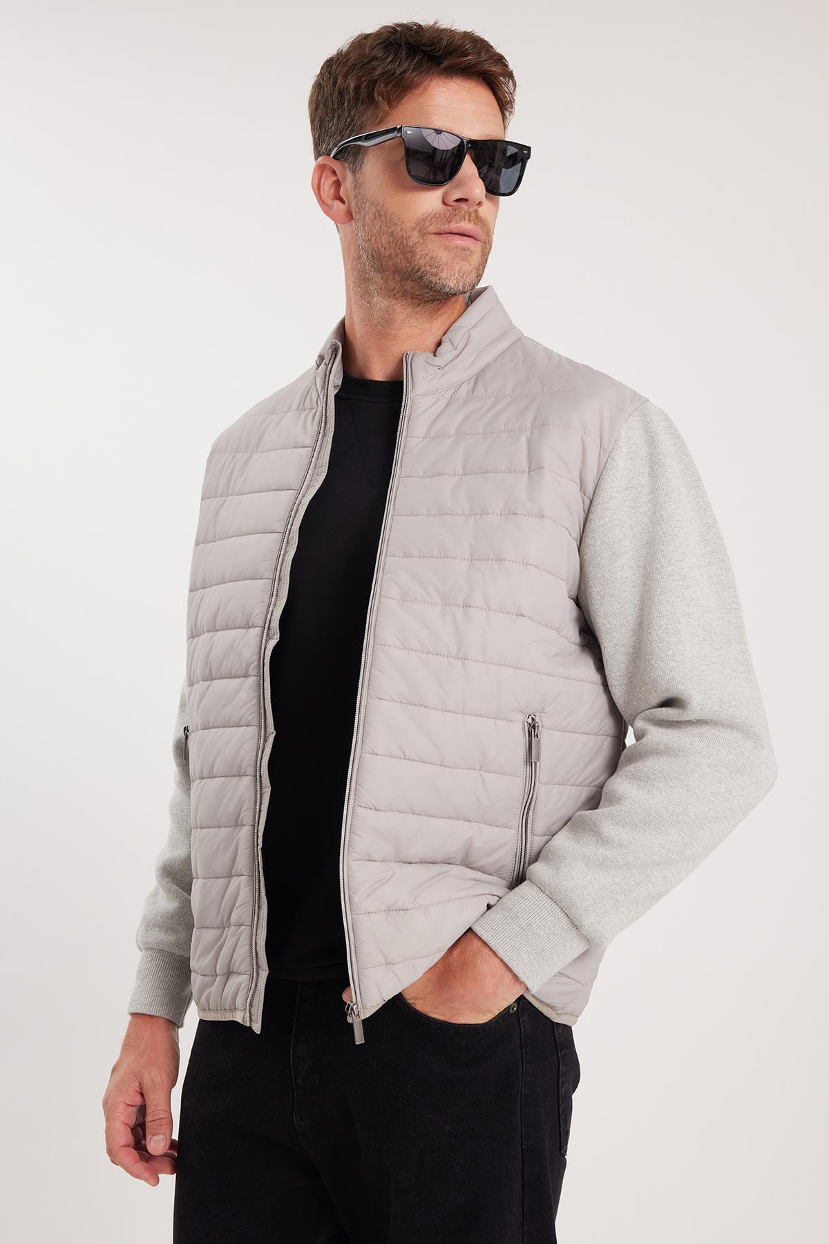 تودورز لباس بافتنی آستین‌های لحاف برش راحت مردانه Relax Fit کاپشن دو جیب بژ