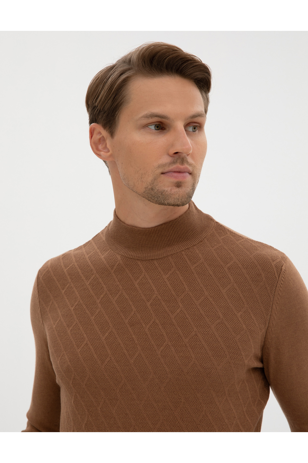 پیر کاردین ژاکت بافتنی نیمه یقه‌بند باریک Camel Melange 50318128-VR122