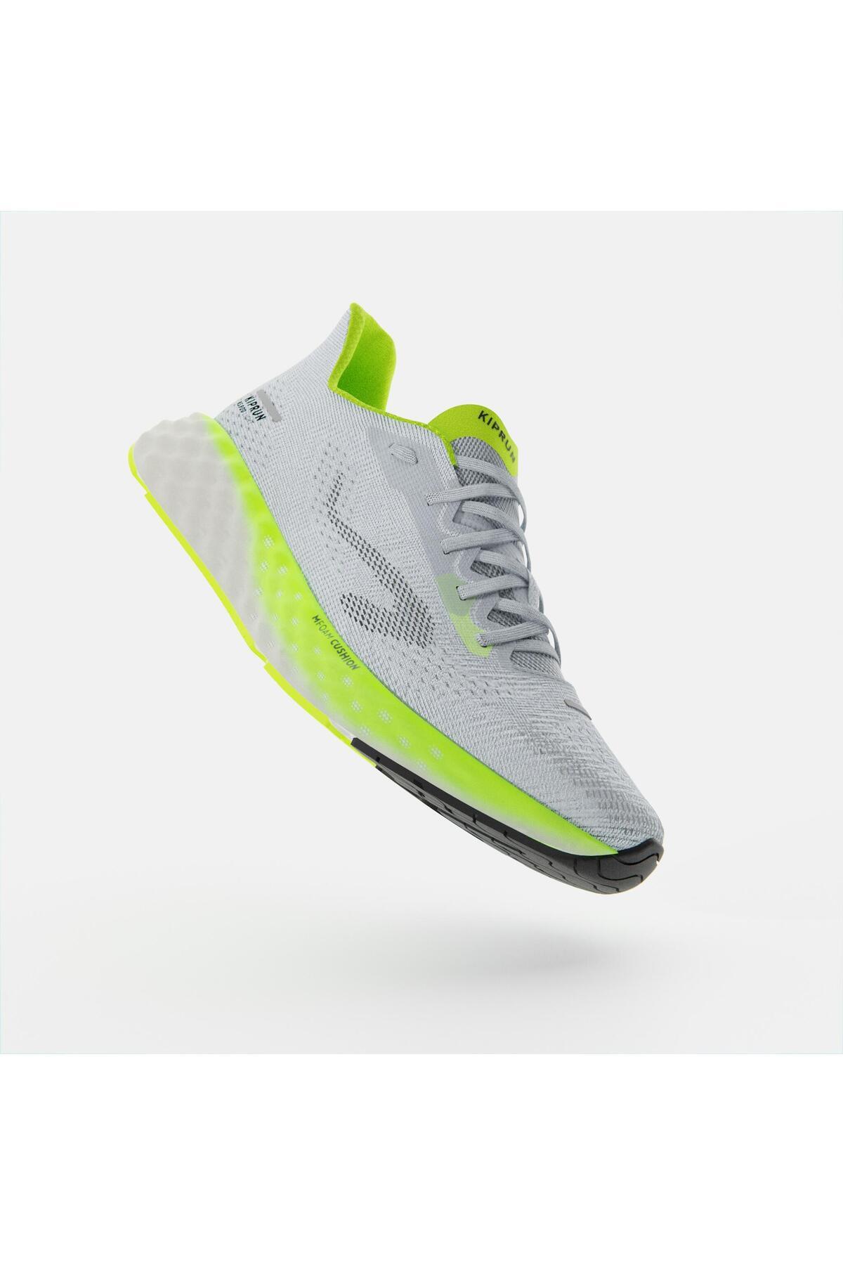 دکتلون کفش دویدن مردانه کیپرون - خاکستری روشن/زرد - Kiprun KS900