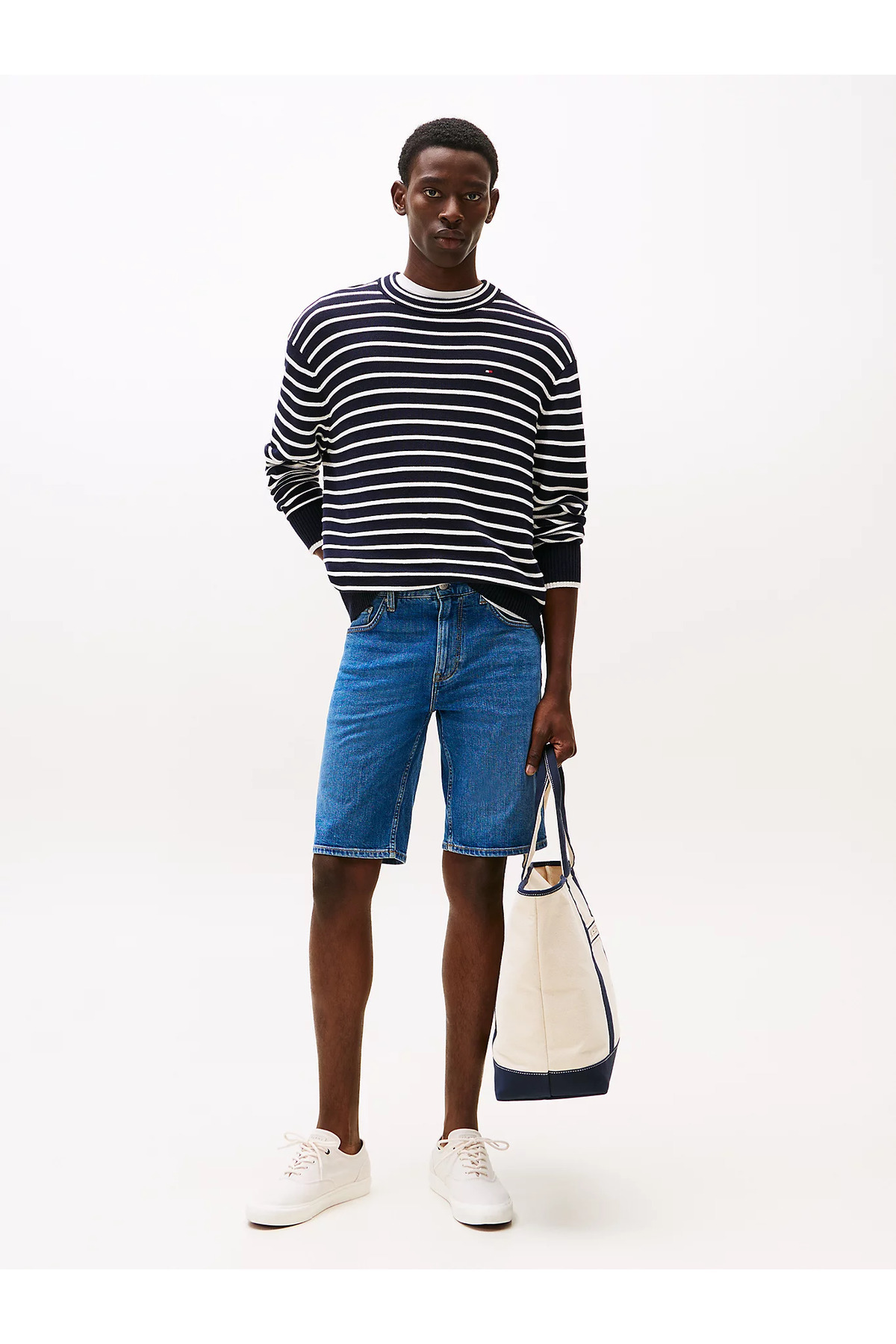 تامی هیلفیگر شلوارک مردانه کمری معمولی راحت جین آبی سرمه ای MW0MW39194-1BE