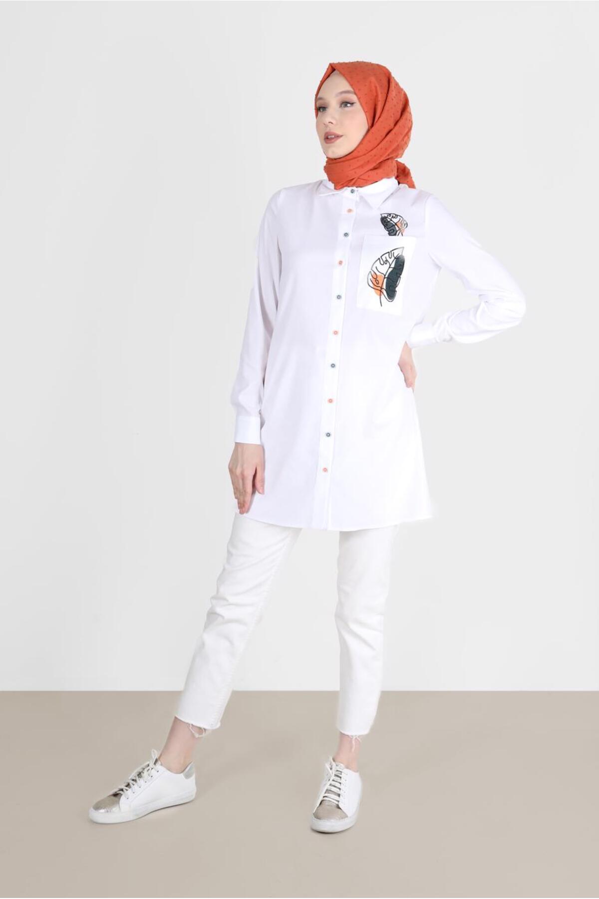 آلوینا تونیک دکمه‌دار گلدوزی شده با جزئیات 41754-1