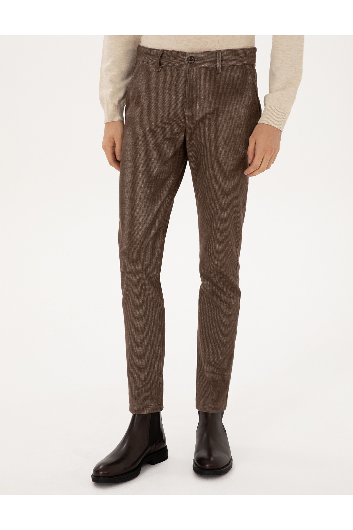 پیر کاردین شلوار برزنتی کمردار الاستیک قهوه ای باریک 50311971-VR040