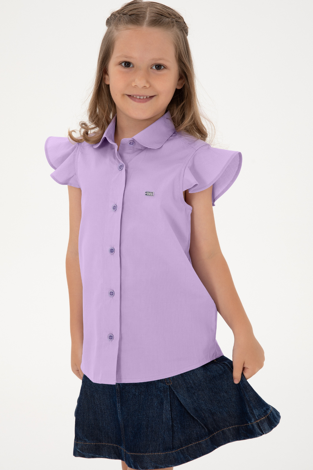 یو اس پولو پیراهن نخی دخترانه آستین حلقه‌ای یاسی رنگ طرح 50306617-VR034