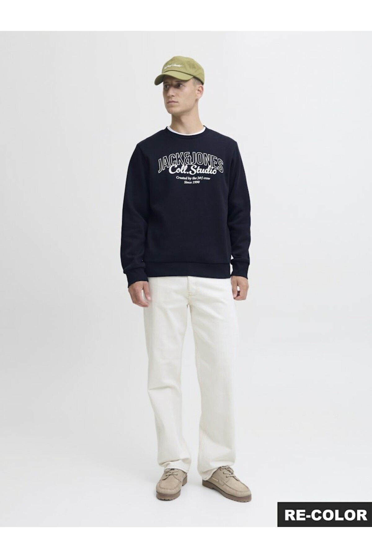 جک اند جونز سویشرت مردانه آبی ناوی Jjmakoto Sweat Neck 12278601-Skycaptai
