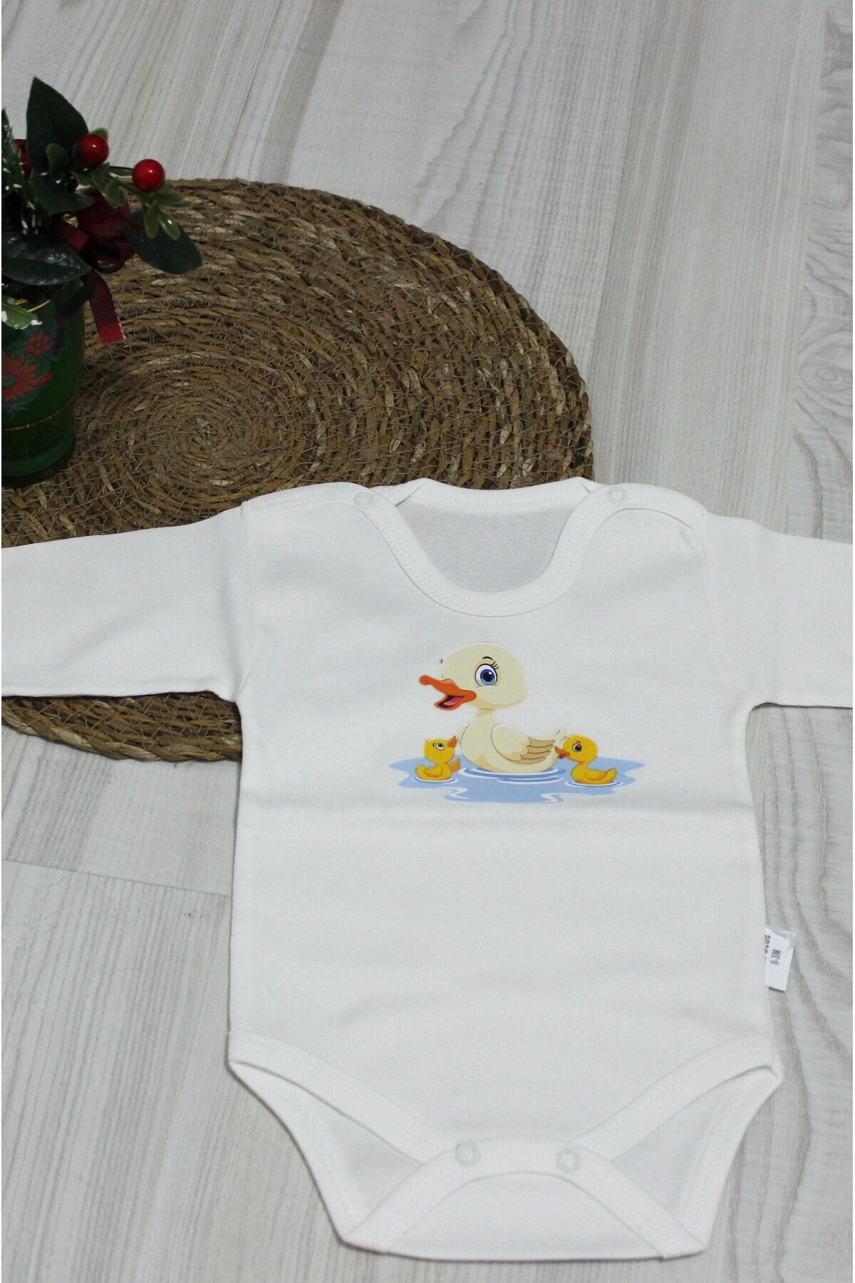 بادی نوزادی دخترانه آستین بلند طرح دار | Melays Bebek Uzun Kol Zıbın
