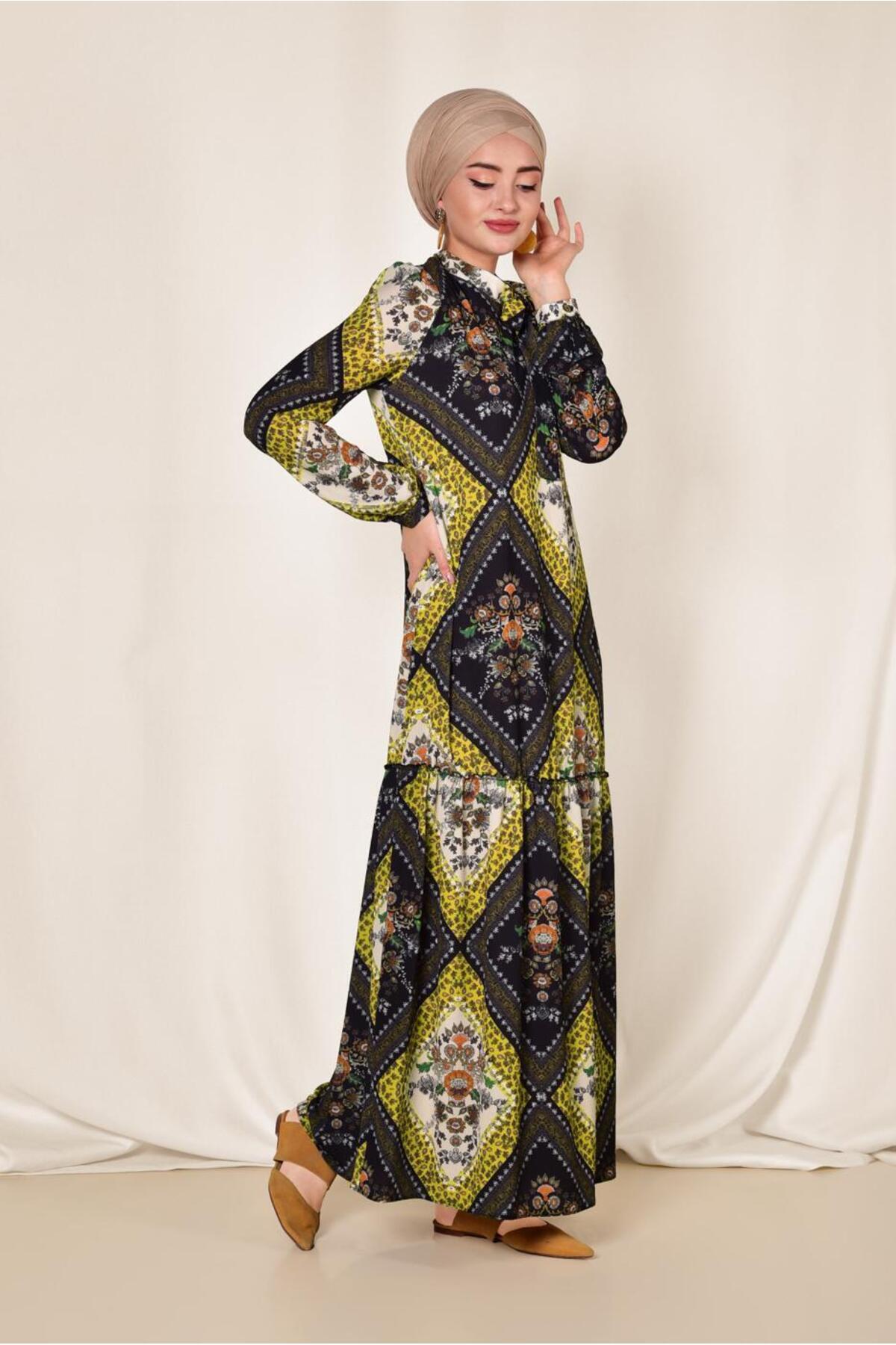 لباس بلند آلوینا آستین بلند طرح دار زنانه | Alvina 20YELB004125
