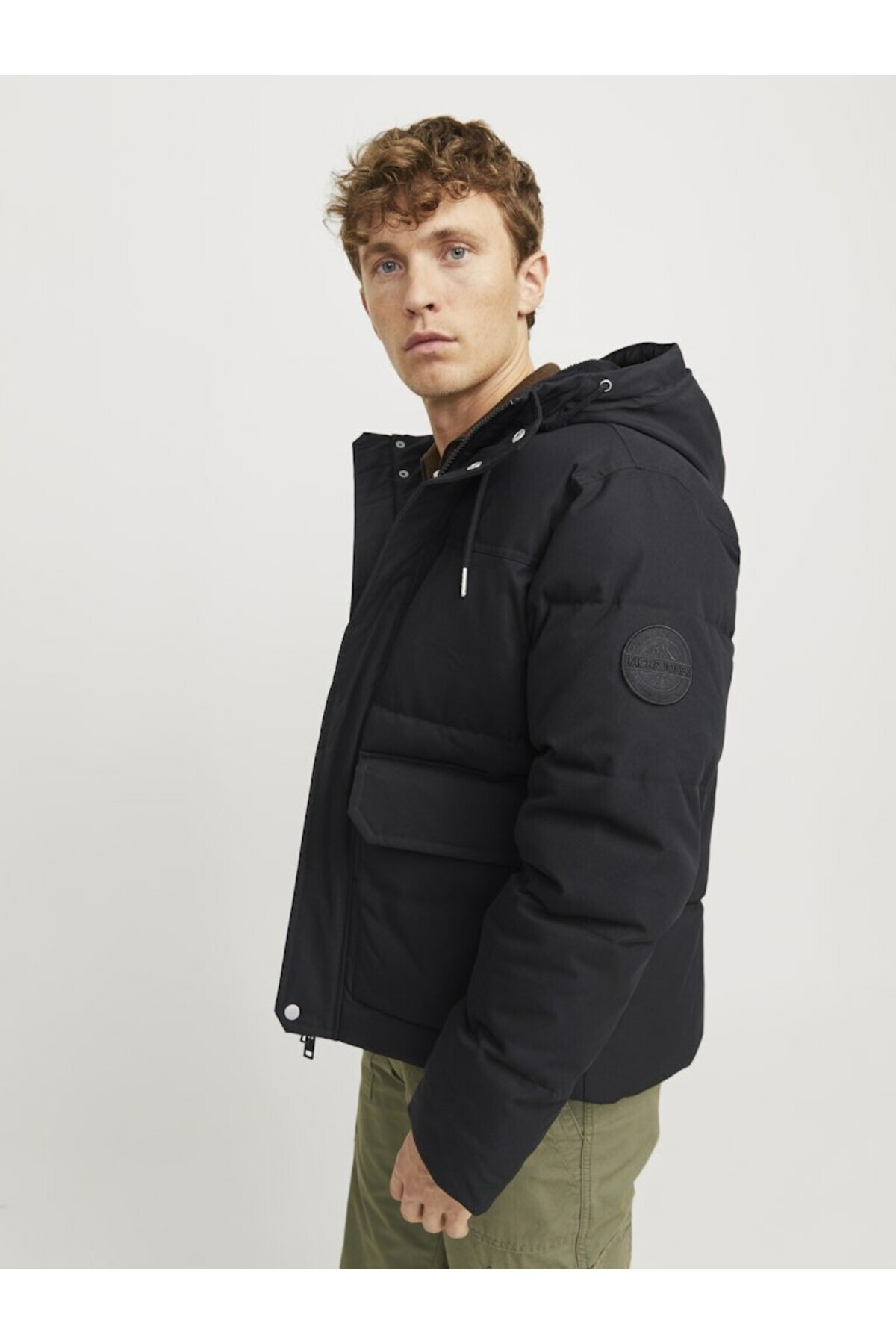 جک اند جونز کاپشن مردانه پفی مشکی Jjcarl 12256901-مشکی